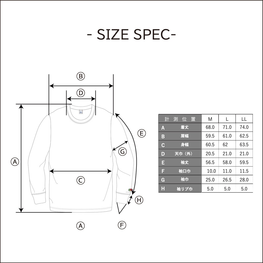 | サイズ(cm) | 肩幅 | 袖丈 | 身幅 | 着丈 |