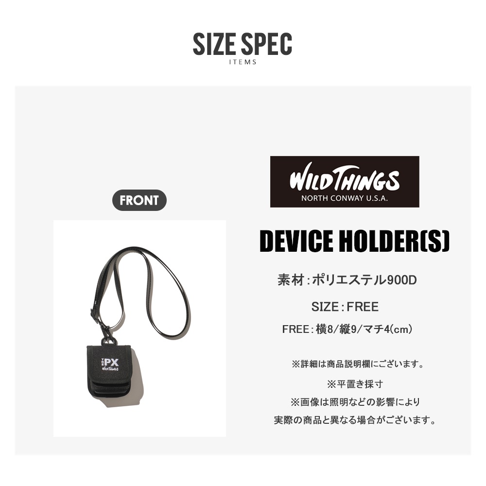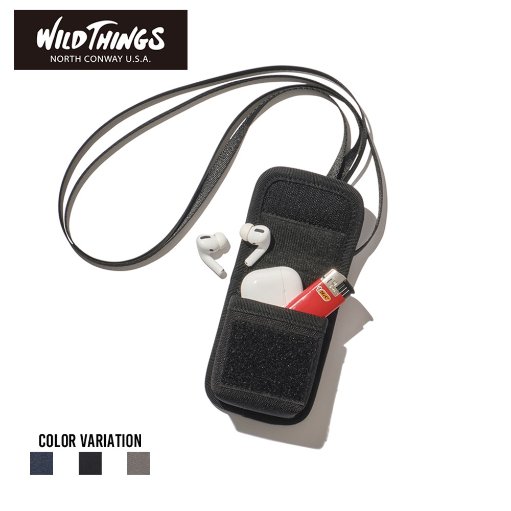 WILD THINGSより、便利なディバイスホルダーが登場しました☆ イヤホンやリップなど、こまごまとしたものを入れておくことができるディバイスホルダー。 首から下げられるので、アウトドアや旅行の際には重宝すること間違いなし! ポケットがない洋服の日のポケット代わりとしても活躍します。