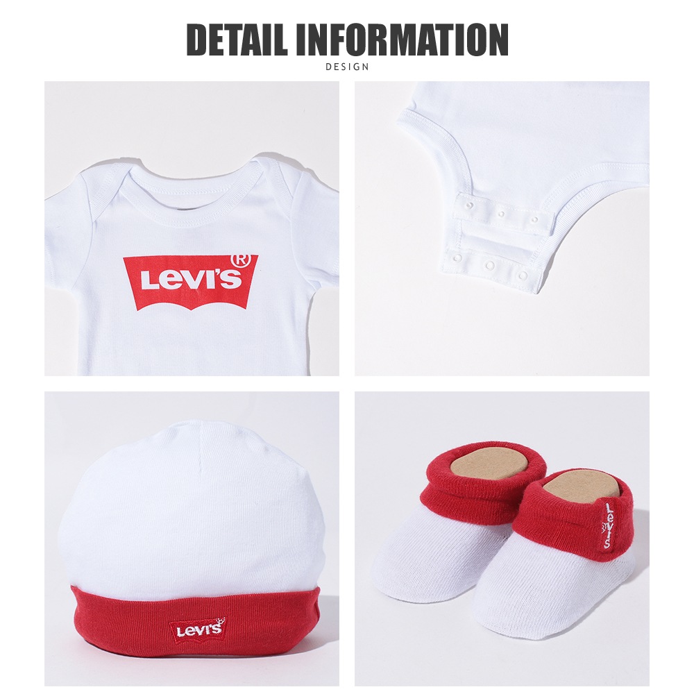 Levi'sより、ベビー用ボディスーツ、ハット、ソックスがセットになったギフトボックスが登場しました☆