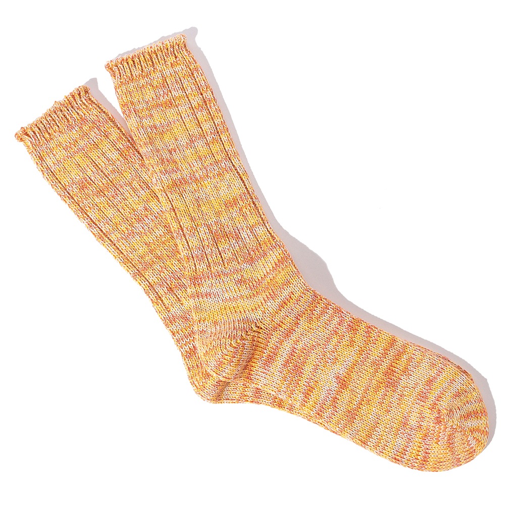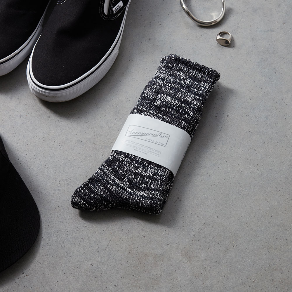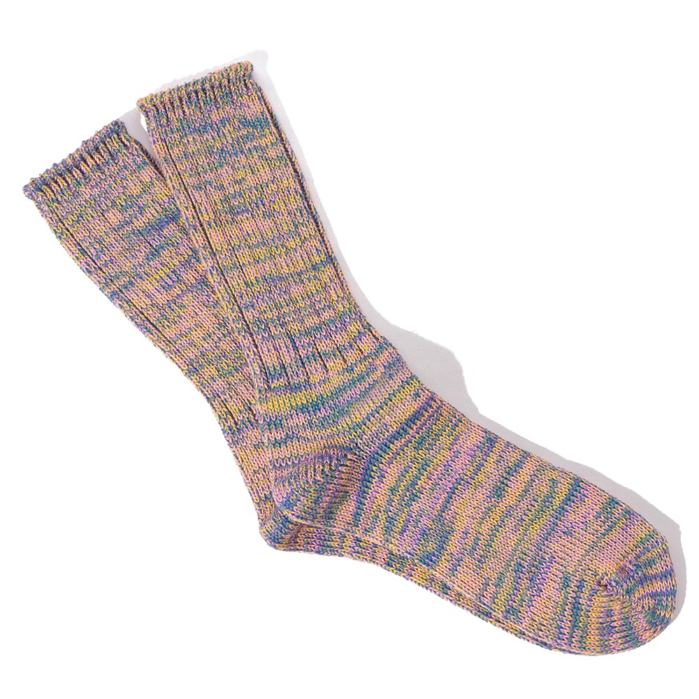 それぞれ異なる色を引き揃え、色々が混ざり奥行きのある色目が仕上がるアノニマスイムズを代表するソックスです。