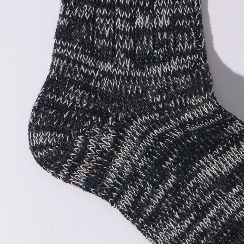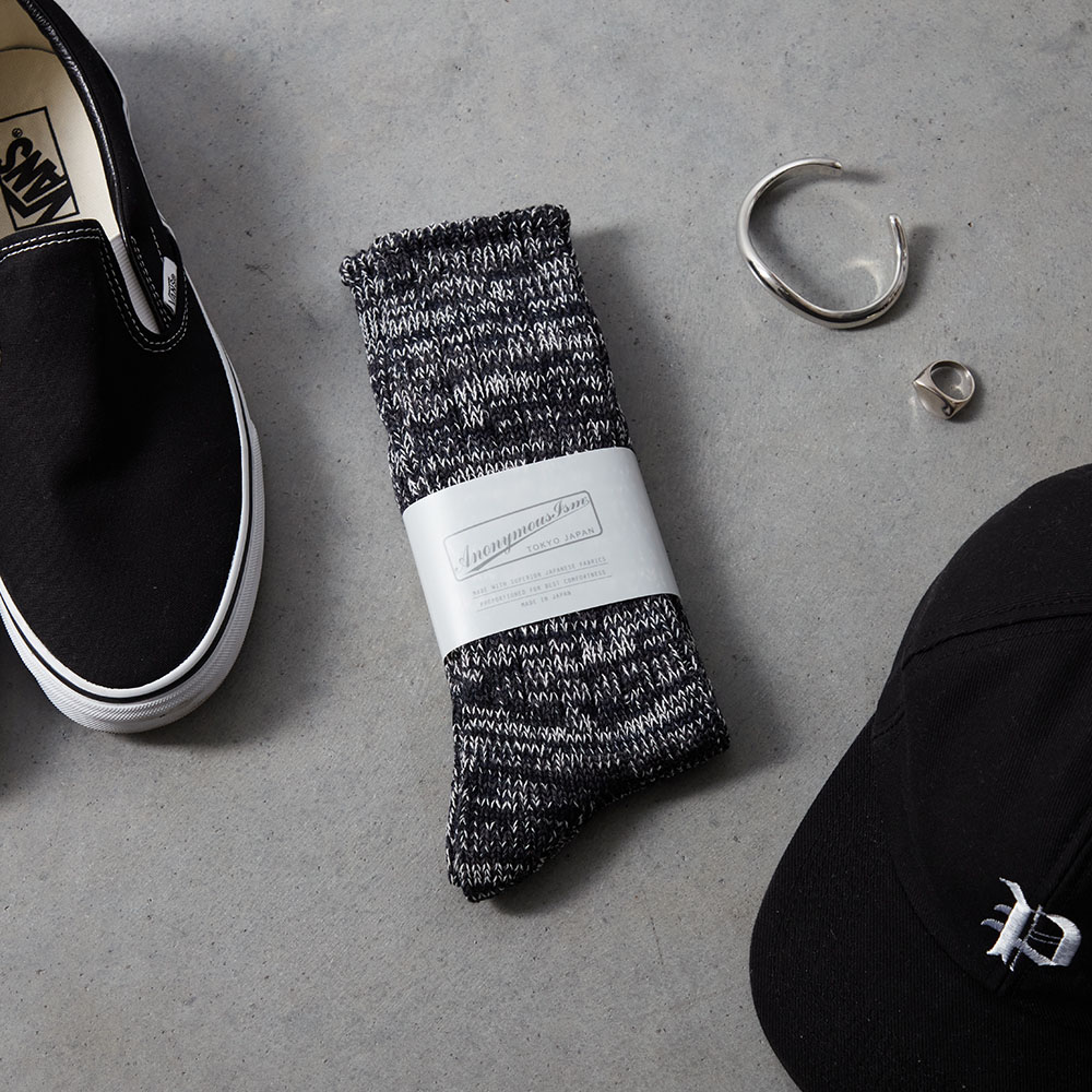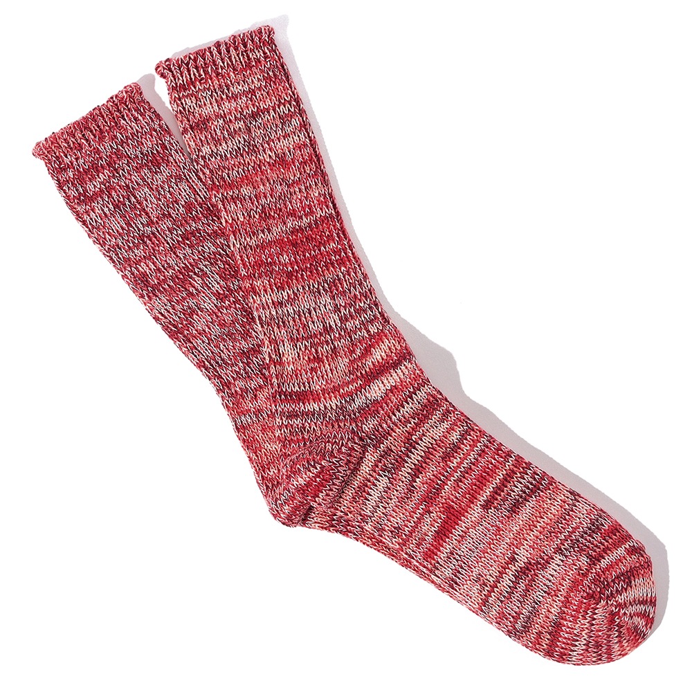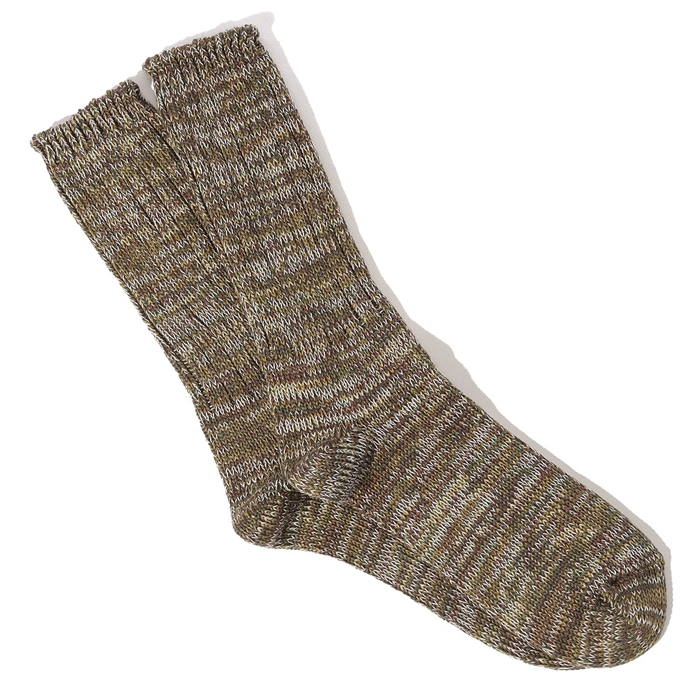 それぞれ異なる色を引き揃え、色々が混ざり奥行きのある色目が仕上がるアノニマスイムズを代表するソックスです。