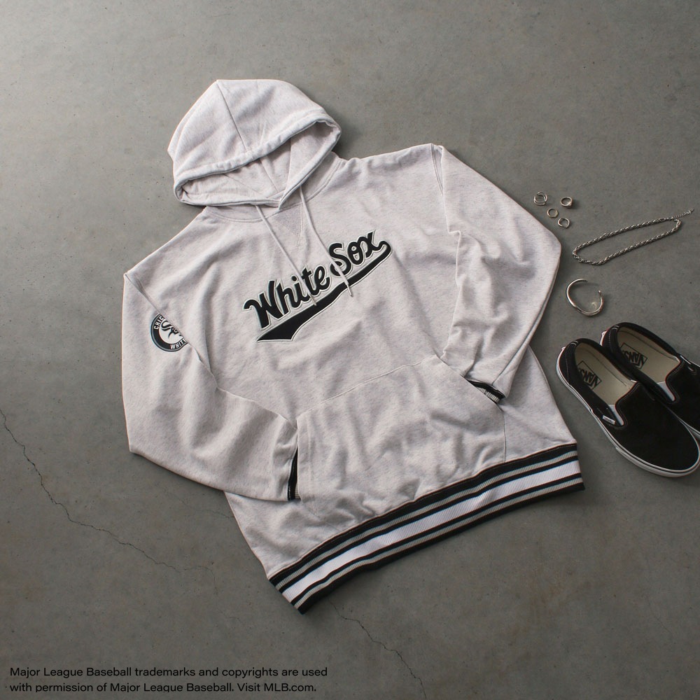 カレッジ調に表現した球団ロゴのワッペン刺繍デザインをフロント部分に施したパーカー。