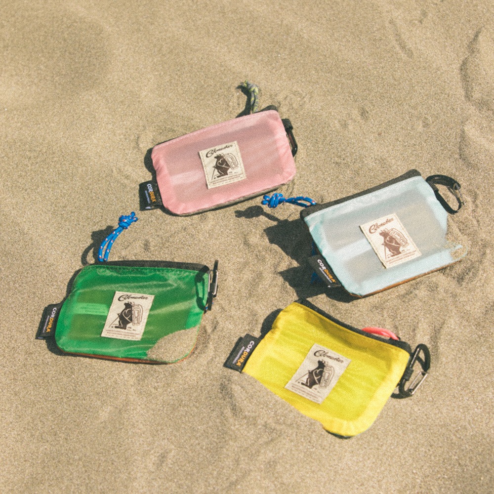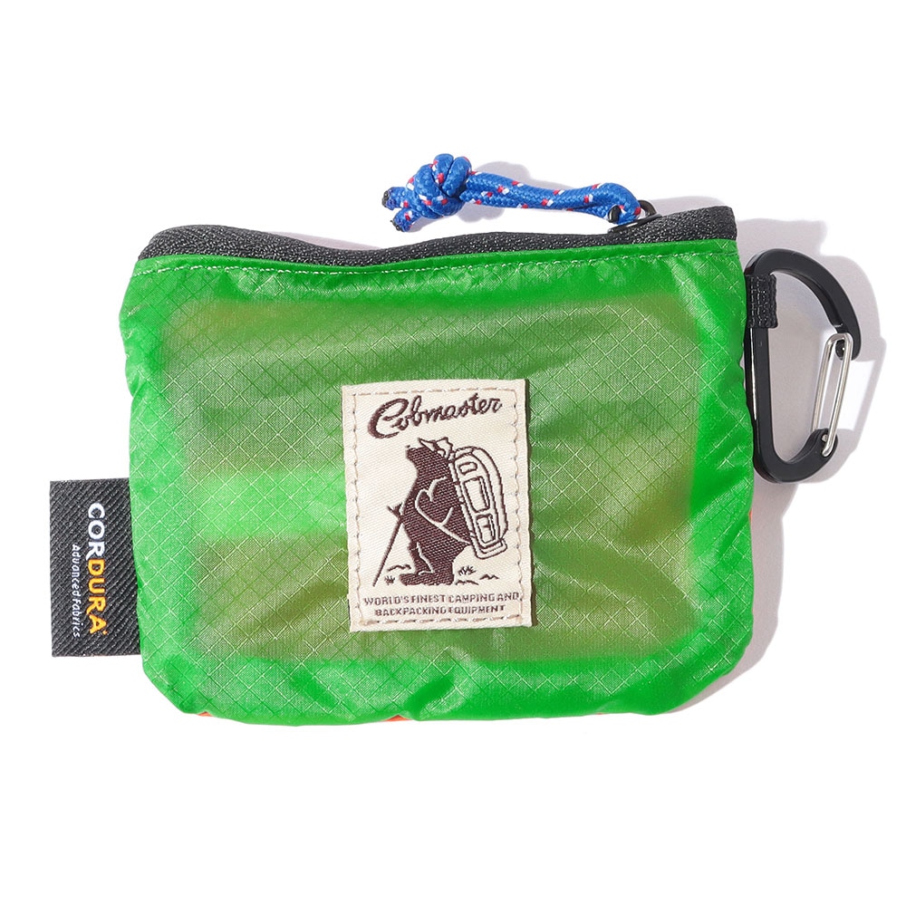2ポケットのカラナビ付きシンプルコインケース。強度と防水性に優れたコーデュラシルナイロン素材を使用。