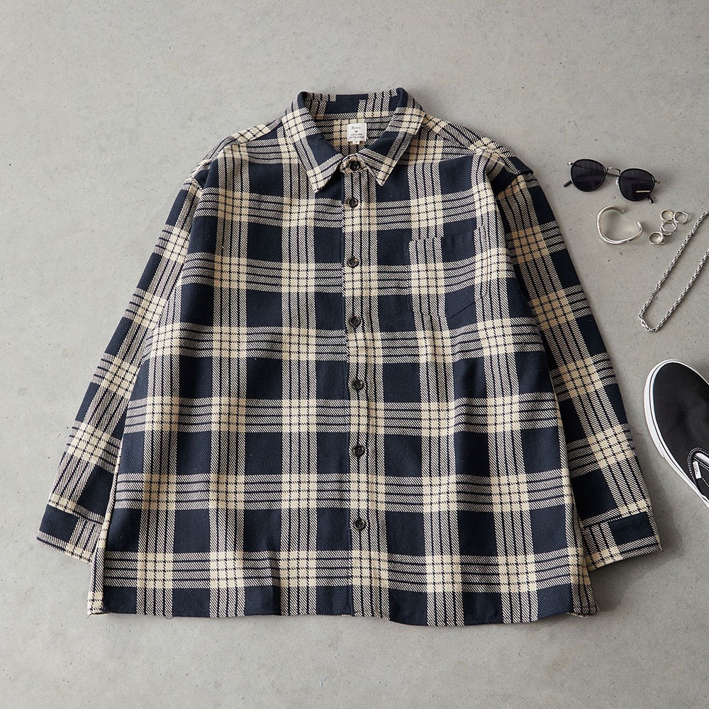 古着のヘビーフランネルの様な厚みのあるヴィンテージライクなチェック柄。