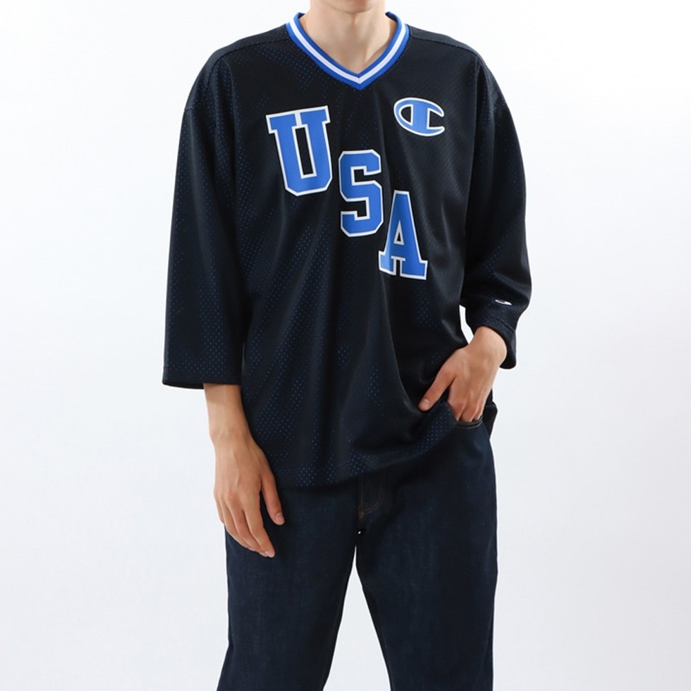 胸に「USA(ユーエスエー)」の大きな文字とCロゴのラバープリント入りで、左裾にジョックタグ付き。