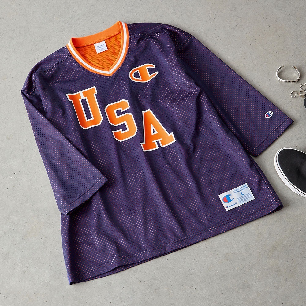 ラインリブ、裏地メッシュ、プリントはアメリカンスポーツのチームカラーをモチーフにしています。