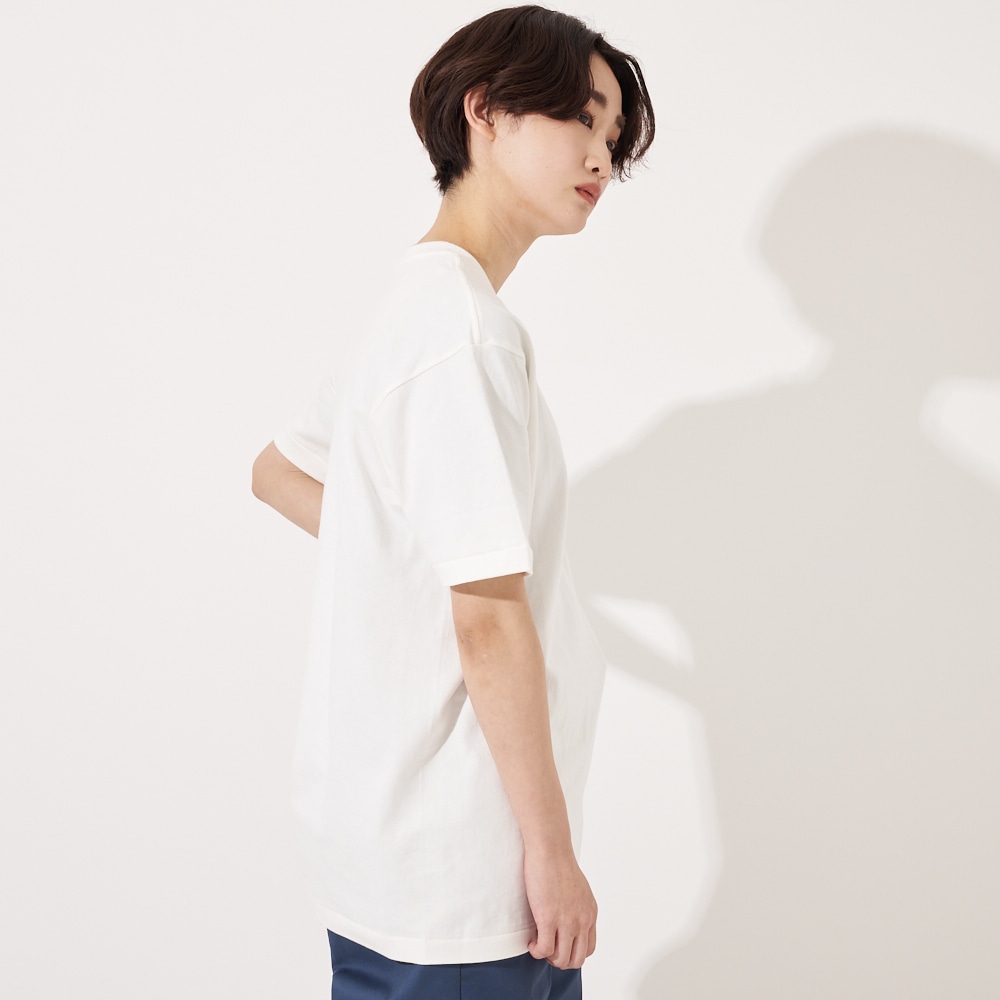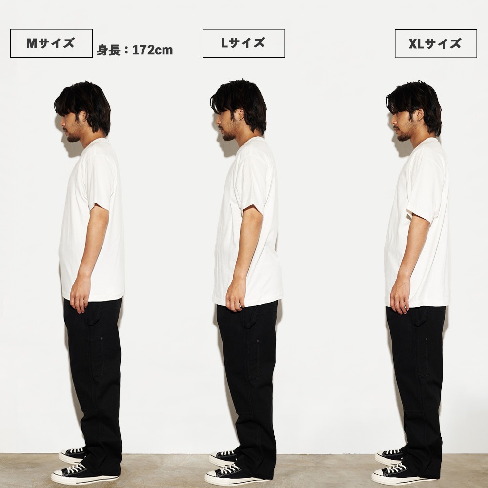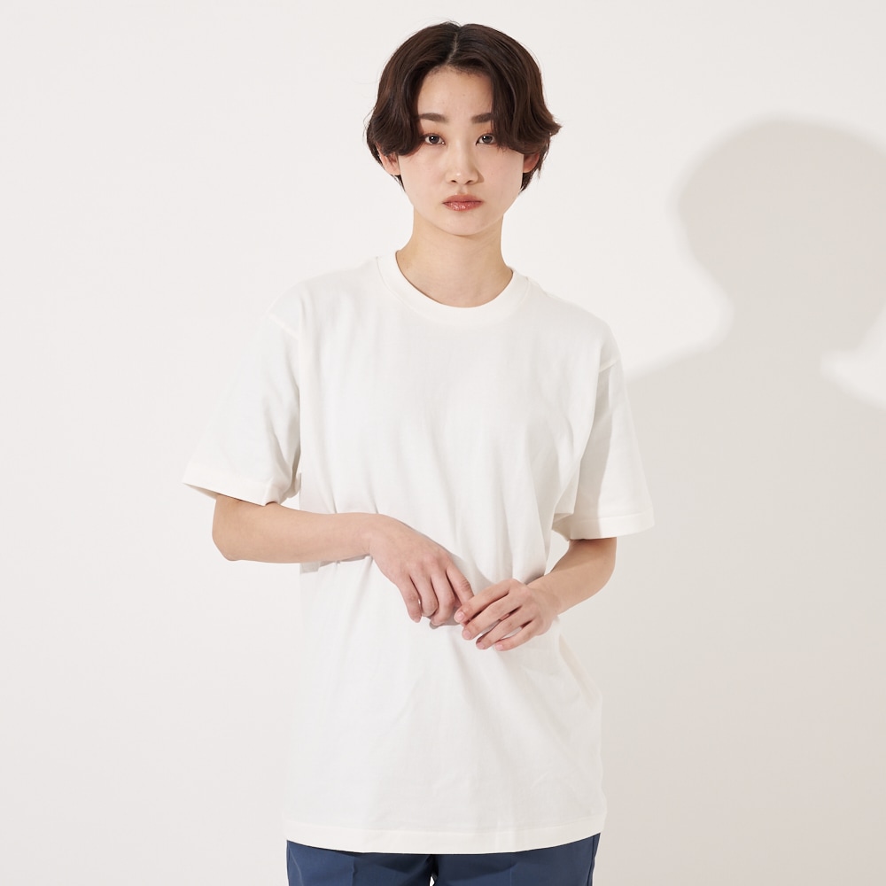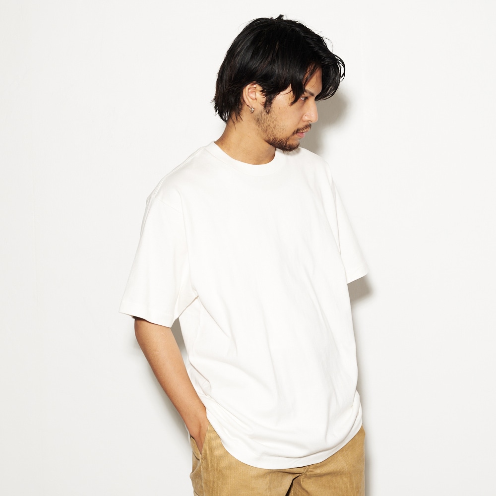 生地は3P-T(3枚入りパックTシャツ)赤ラベルで使用している糸を双糸にして編み立てた、厚みと柔らかさを兼ね備えた7.0オンス。