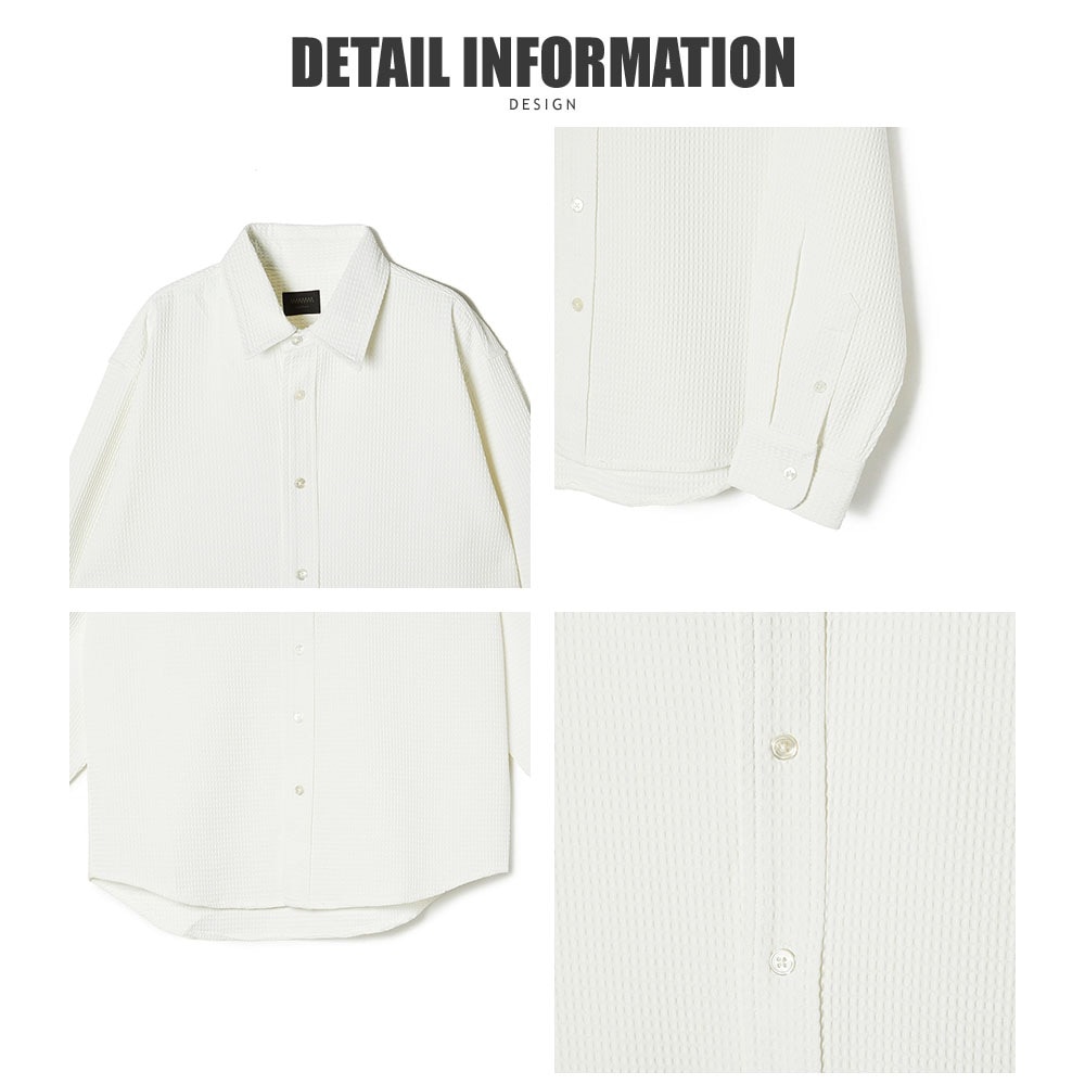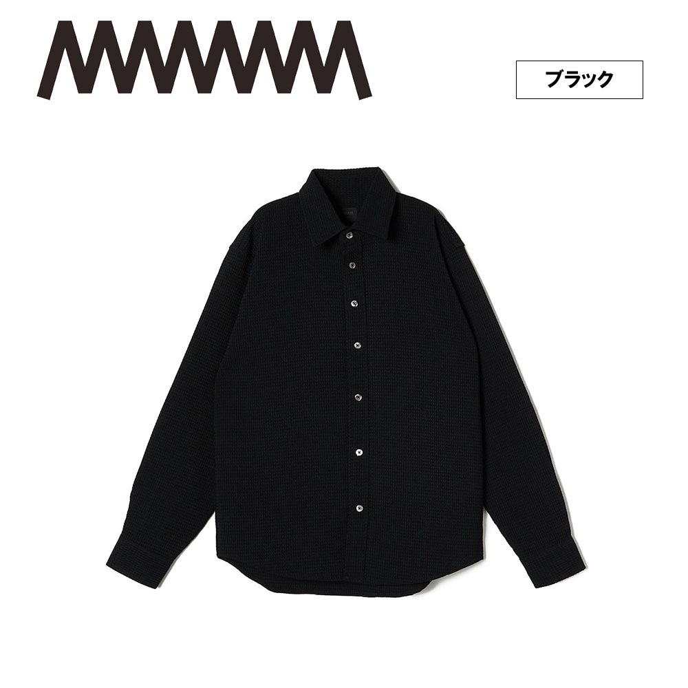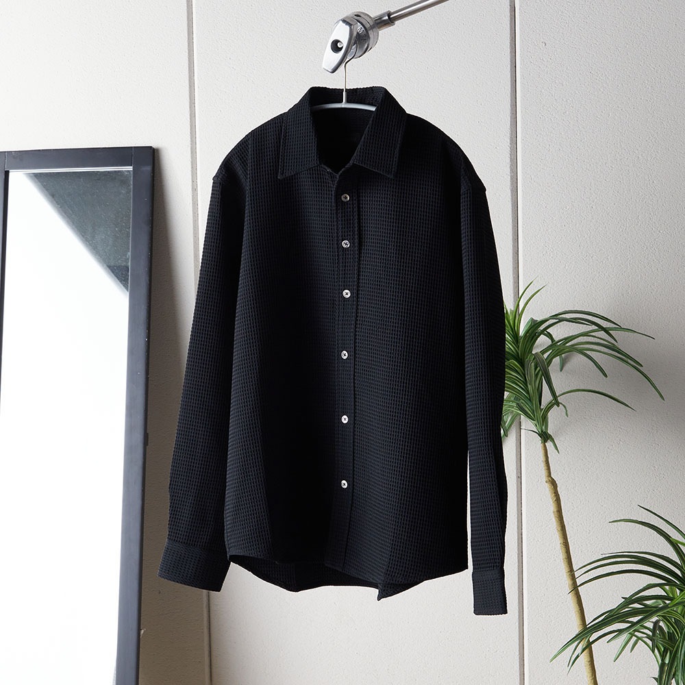 カットソー地のウーブンワッフル素材を使用したシンプルなレギュラーシャツ。