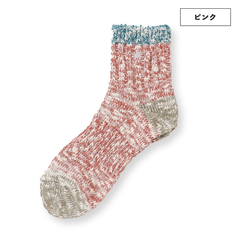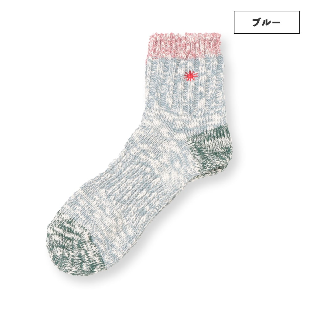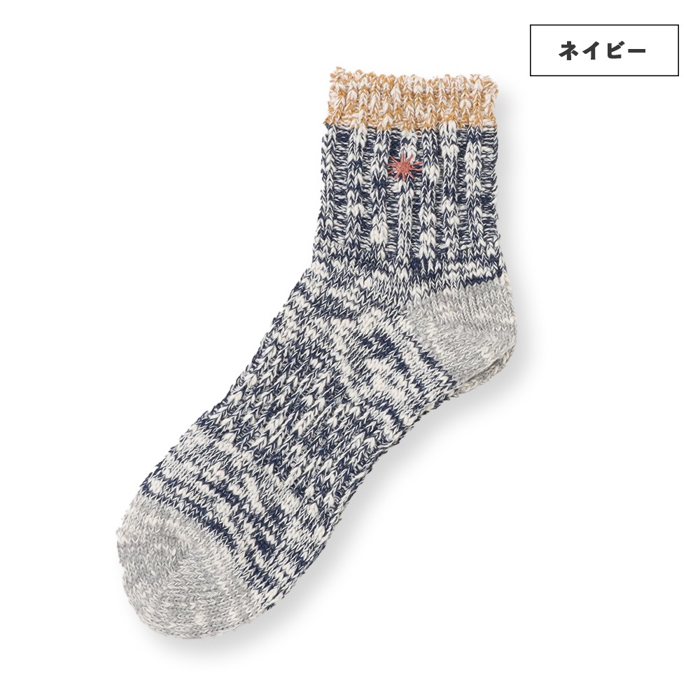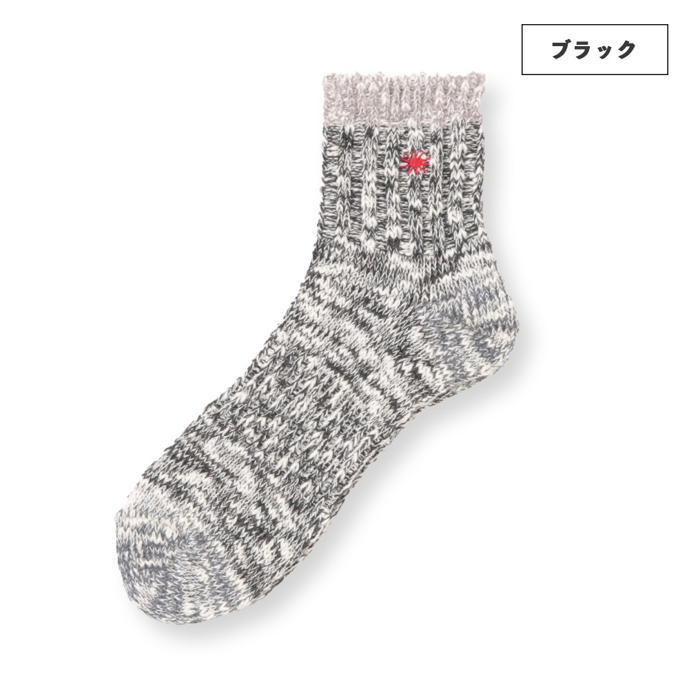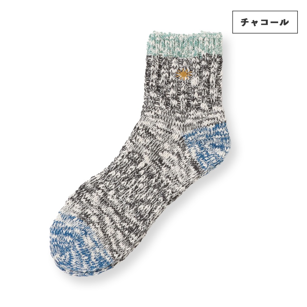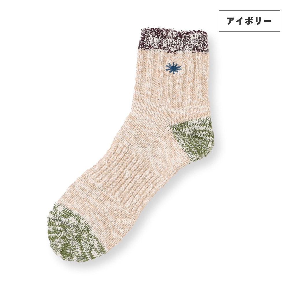 履き口とワンポイント刺繍にアクセントカラーを取り入れたクォーターソックス。