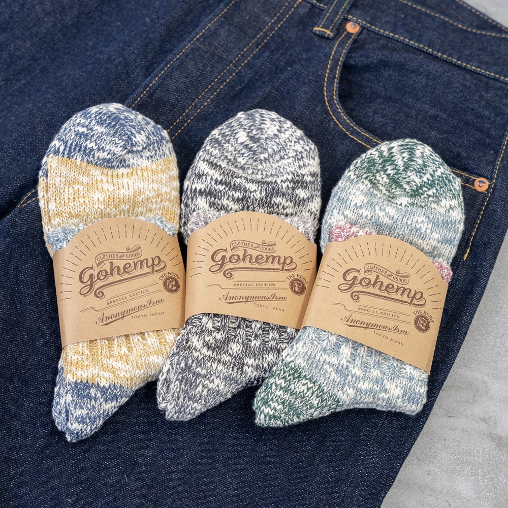 ソックスブランドANONYMOUSISMと1994年設立のブランド「GOHEMP(ゴーヘンプ)」のコラボレーションアイテム。