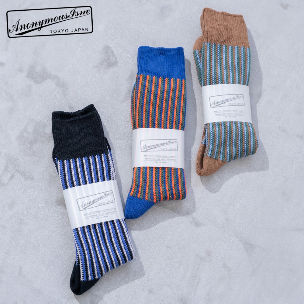 【ANONYMOUSISM】人気の横縞ソックスから縦縞ソックスが登場!
