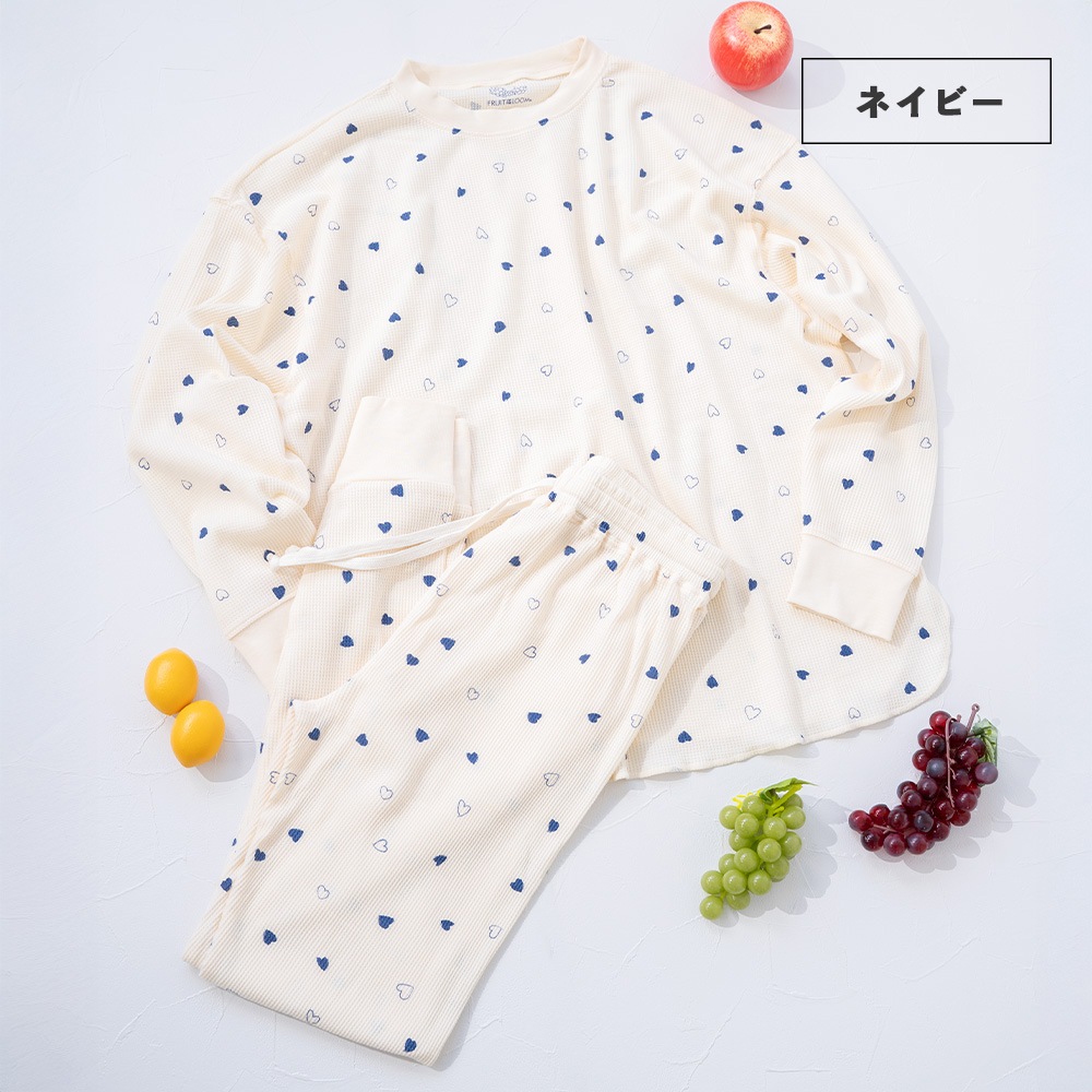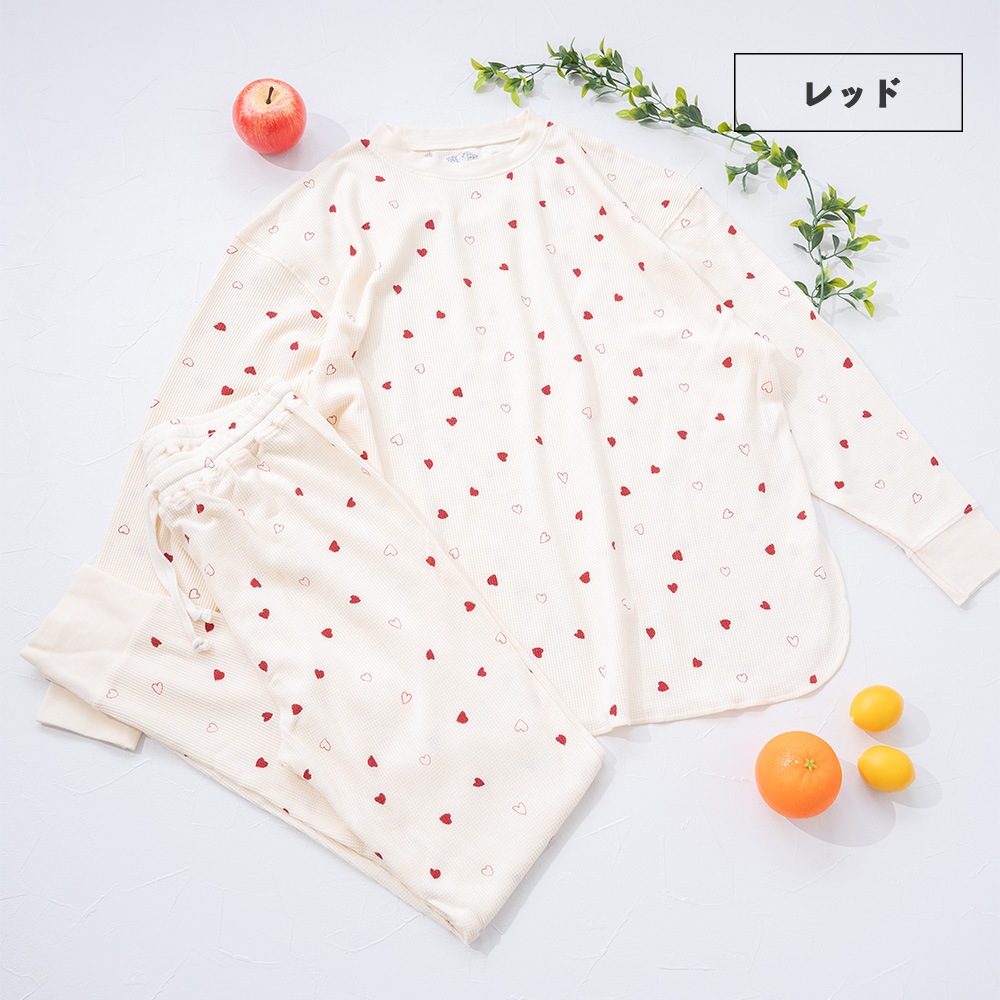 FTL ハート柄2 ワッフルルームウェア 長袖上下セット
