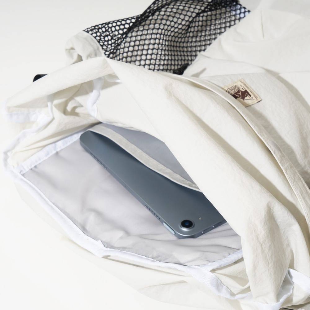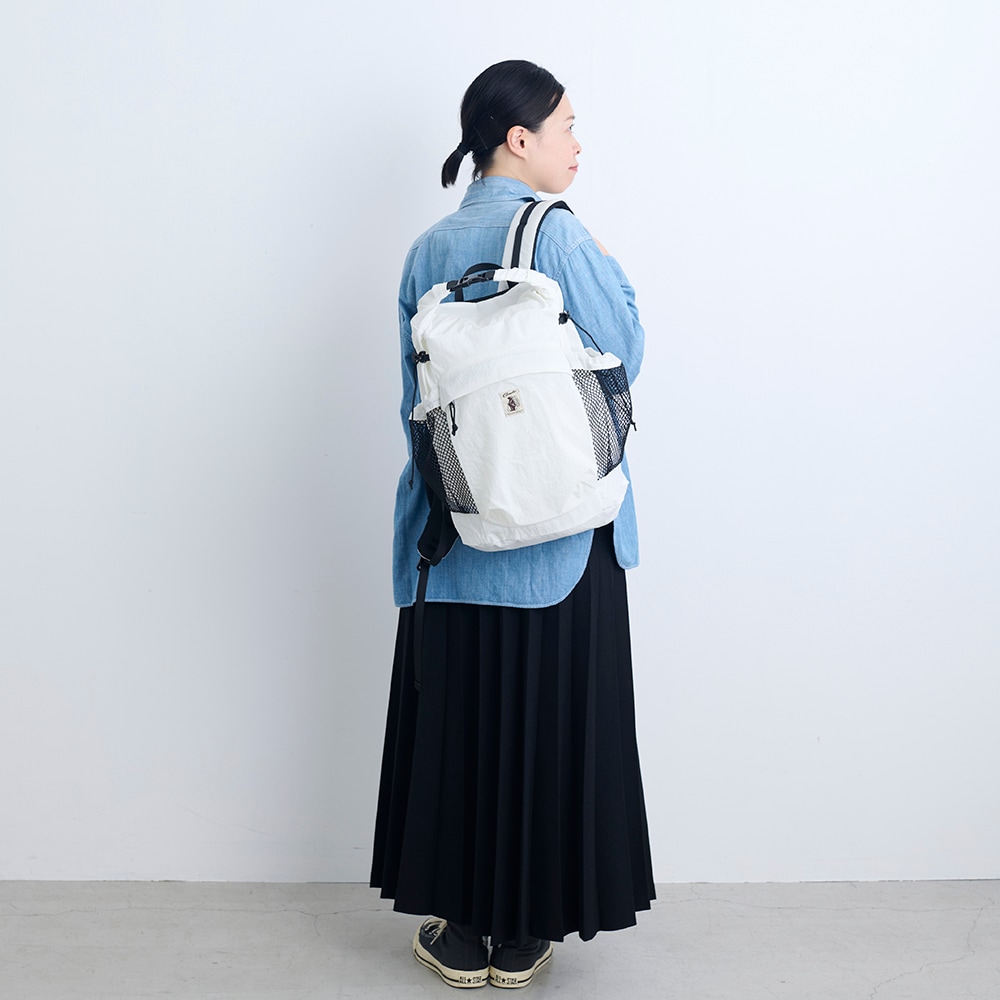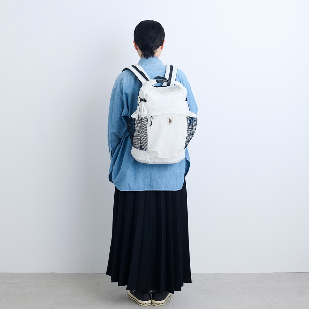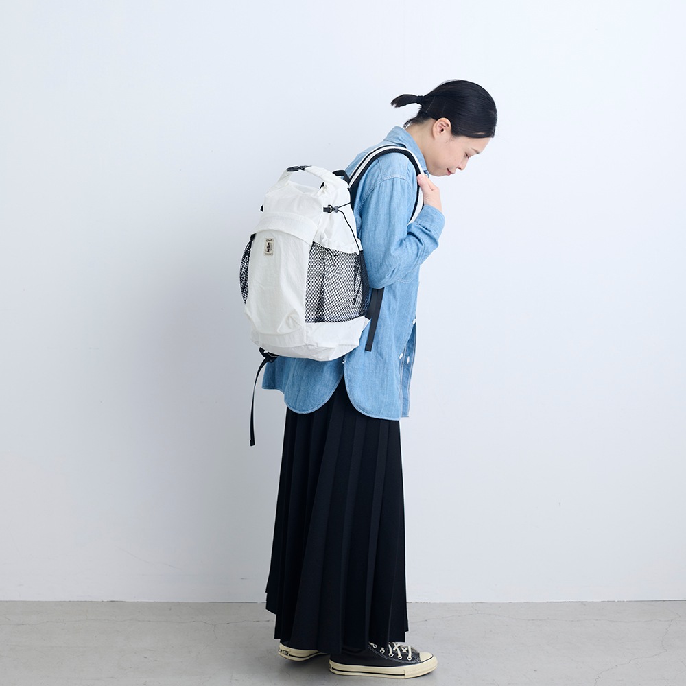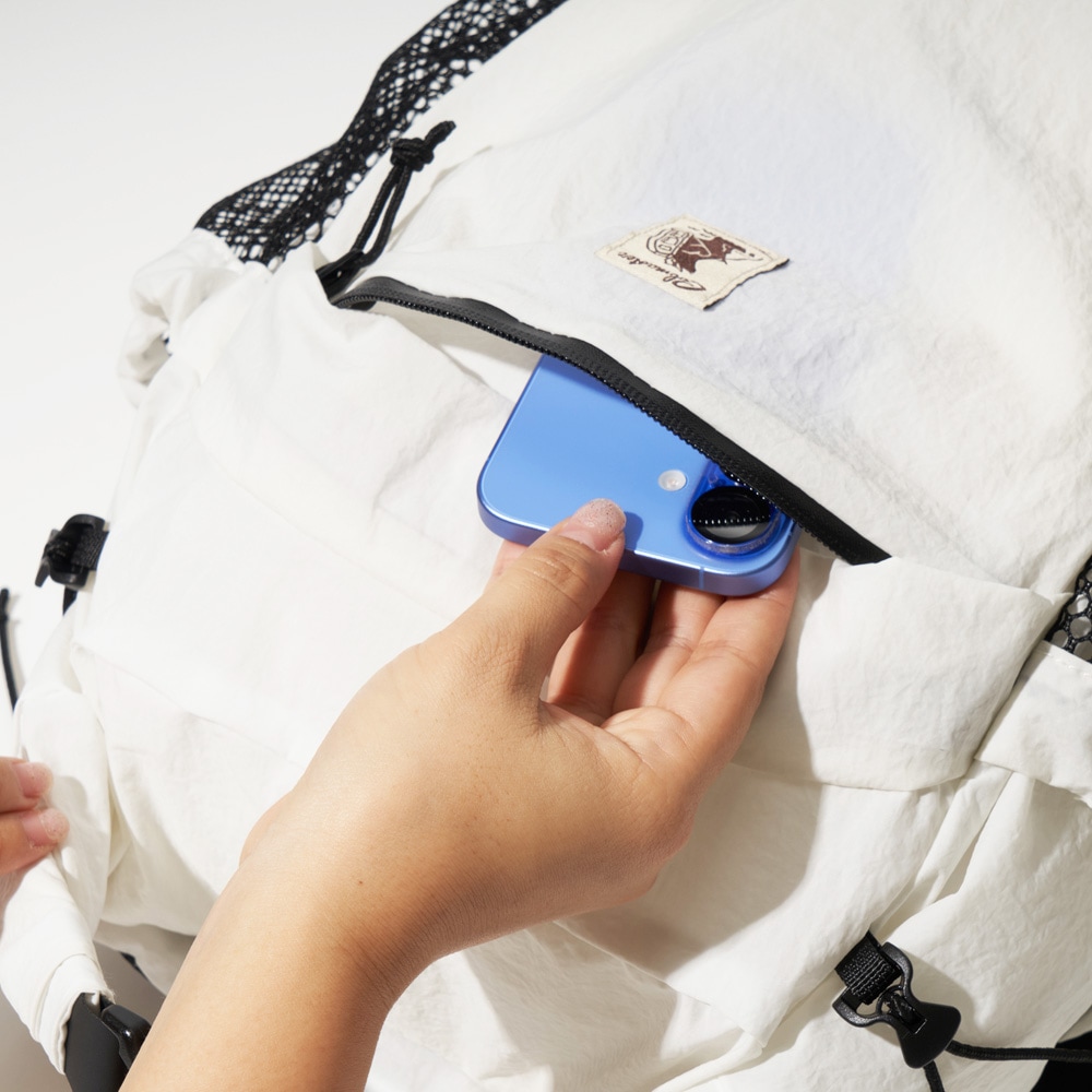 軽量かつ撥水、強度も高い生地なのでアウトドアシーンにも最適です。