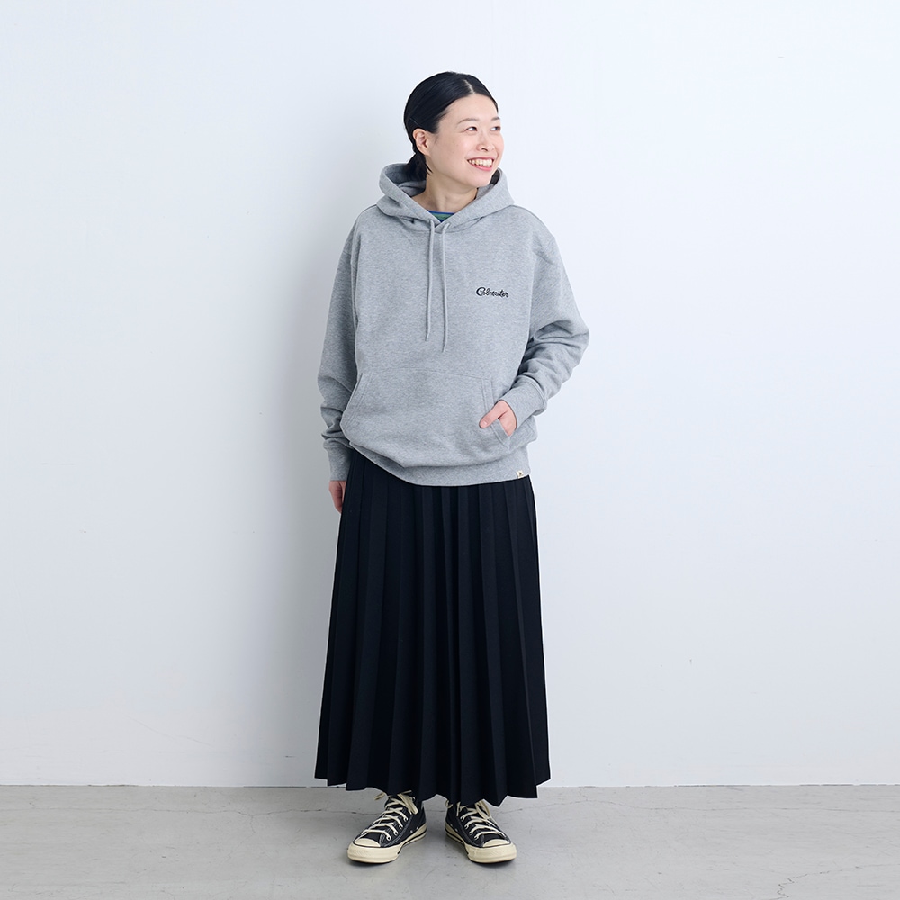 コットンをベースにした、綿らしいガシッとした質感のスウェットフーディ。