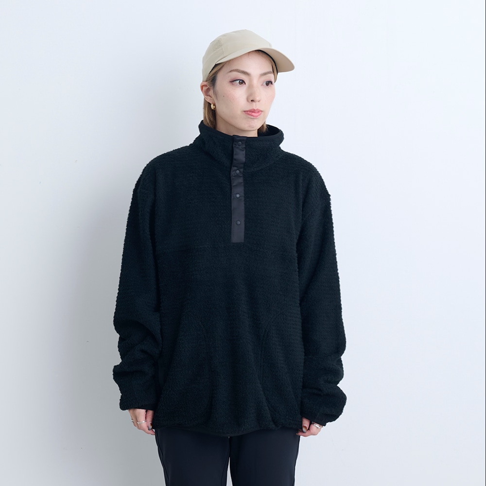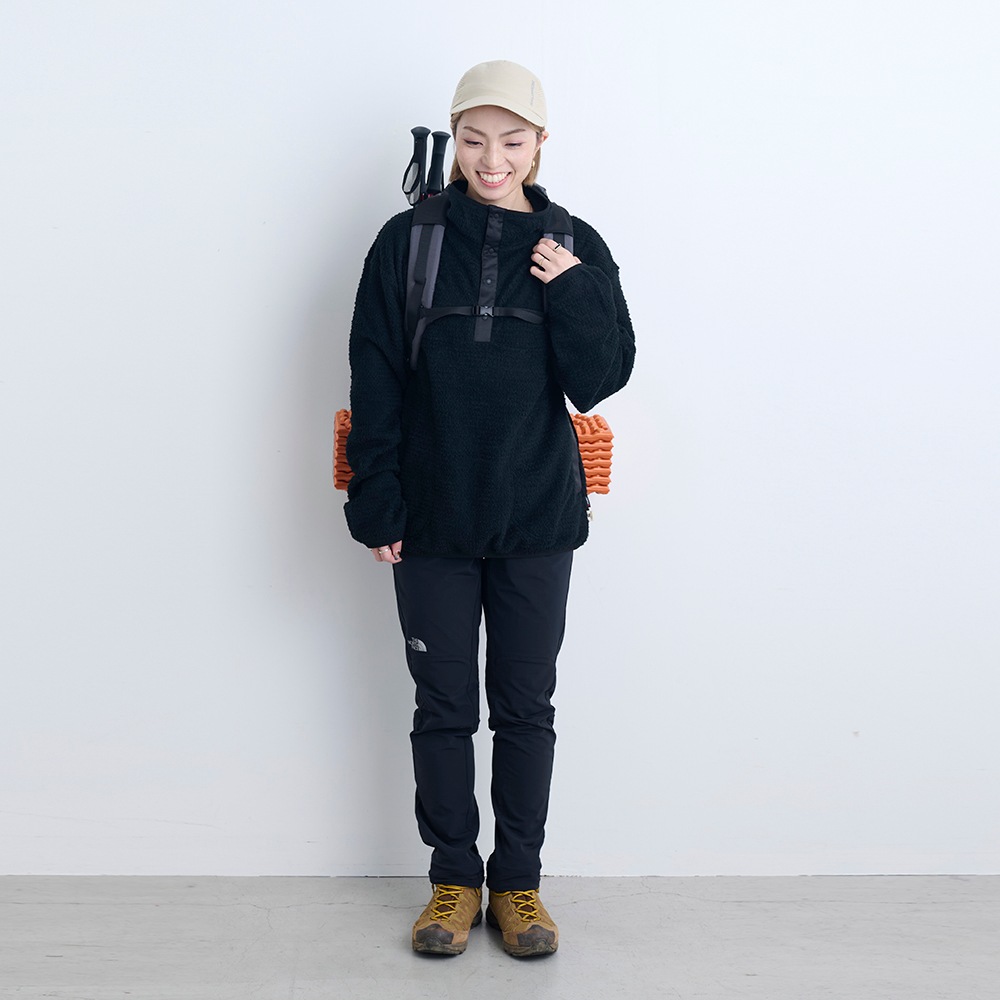 ゆとりあるシルエットで一枚でも着やすく、防風シェルとのレイヤリングでさらに高い保温性を発揮します。