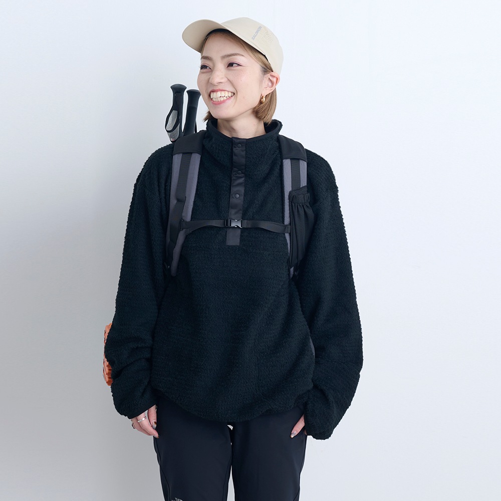 ①保温性・②通気性・③速乾性・④軽量性をバランスよく備え、登山やハイキングなどのアウトドアシーンで求められる快適さを、日常でも使いやすいデザインに仕上げました。