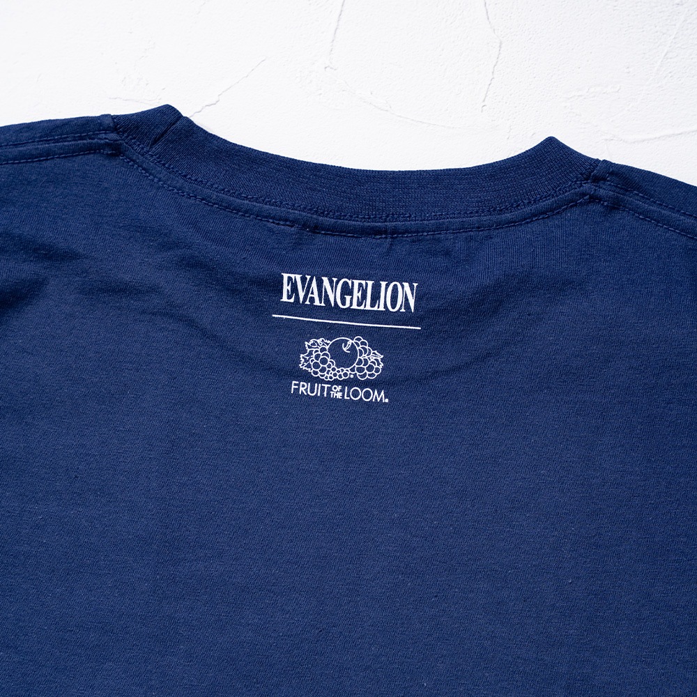 背面の襟裏にはEVANGELIONとFRUIT OF THE LOOMのコラボロゴが鎮座。