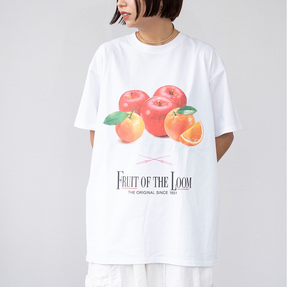 オープンエンド糸を使用したドライタッチな生地と、日本人に最適なサイズ感をミックスしたフルーツオブザルーム(FRUIT OF THE LOOM)自慢のボディーを使用。