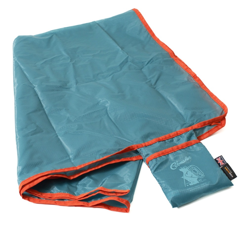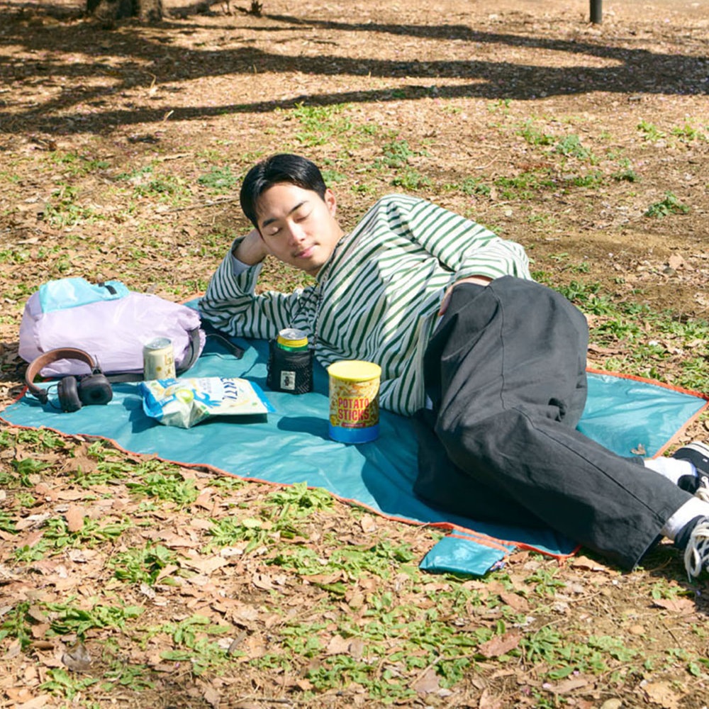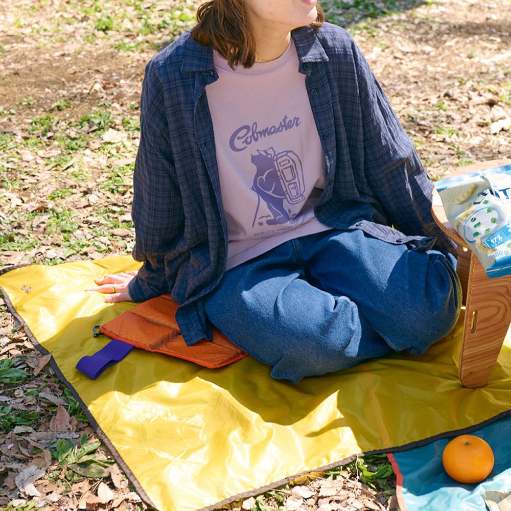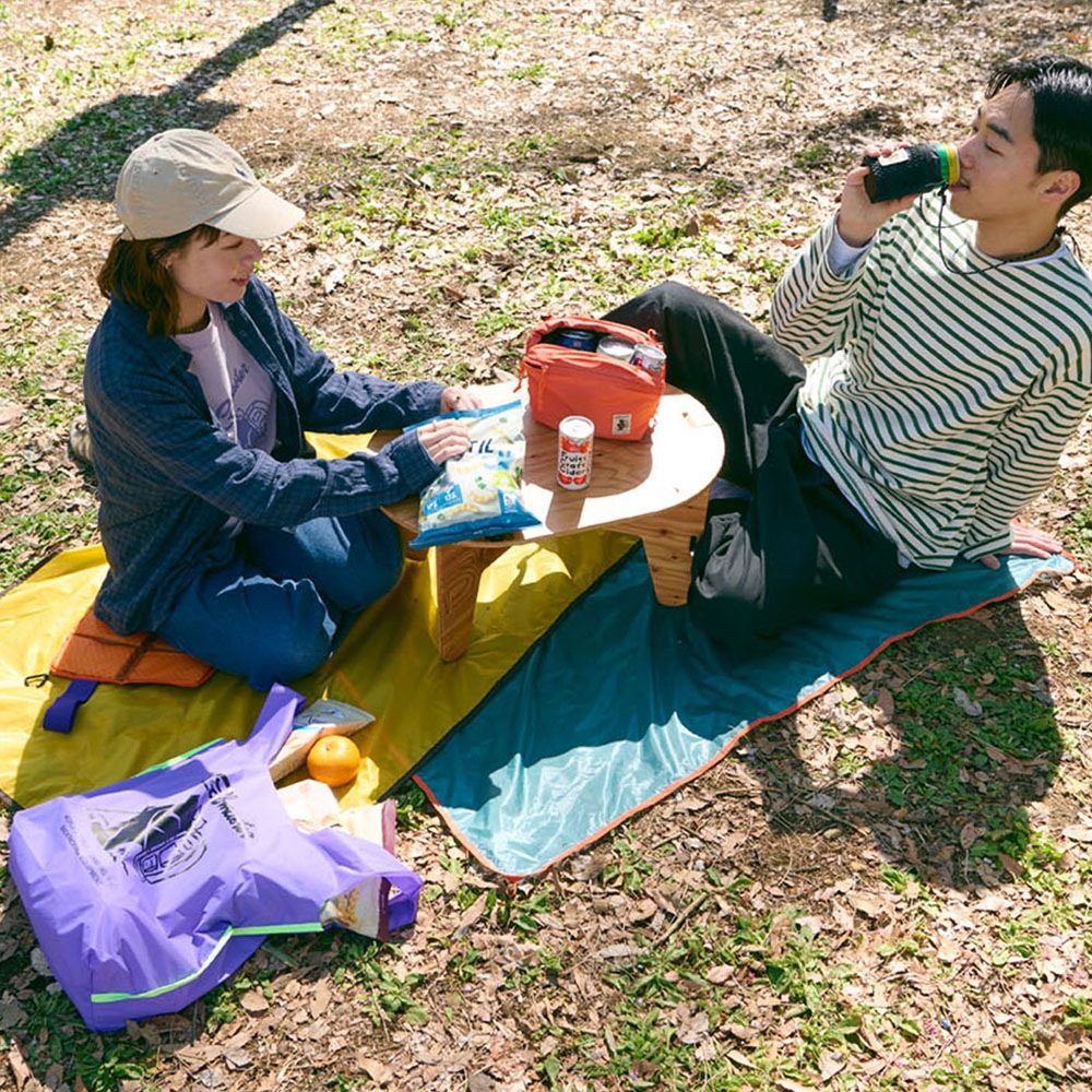 パッカブルポケット付きで、手のひらサイズに収納できるレジャーシート。