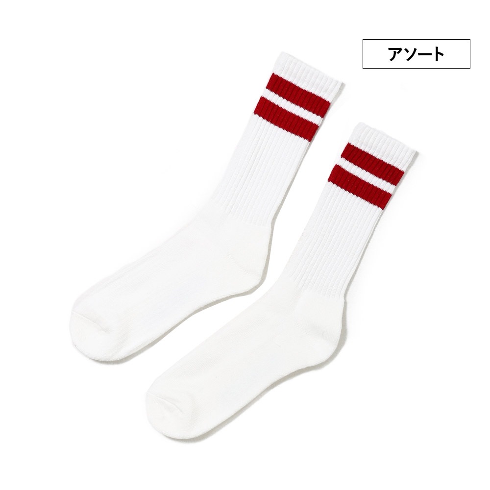 2ライン クルー丈ソックス 3P A 25-27cm