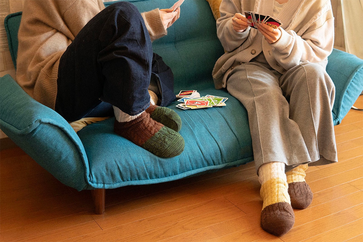 【2足履き】(1足目)シルク混5本指+(2足目)アラン柄毛混ソックス