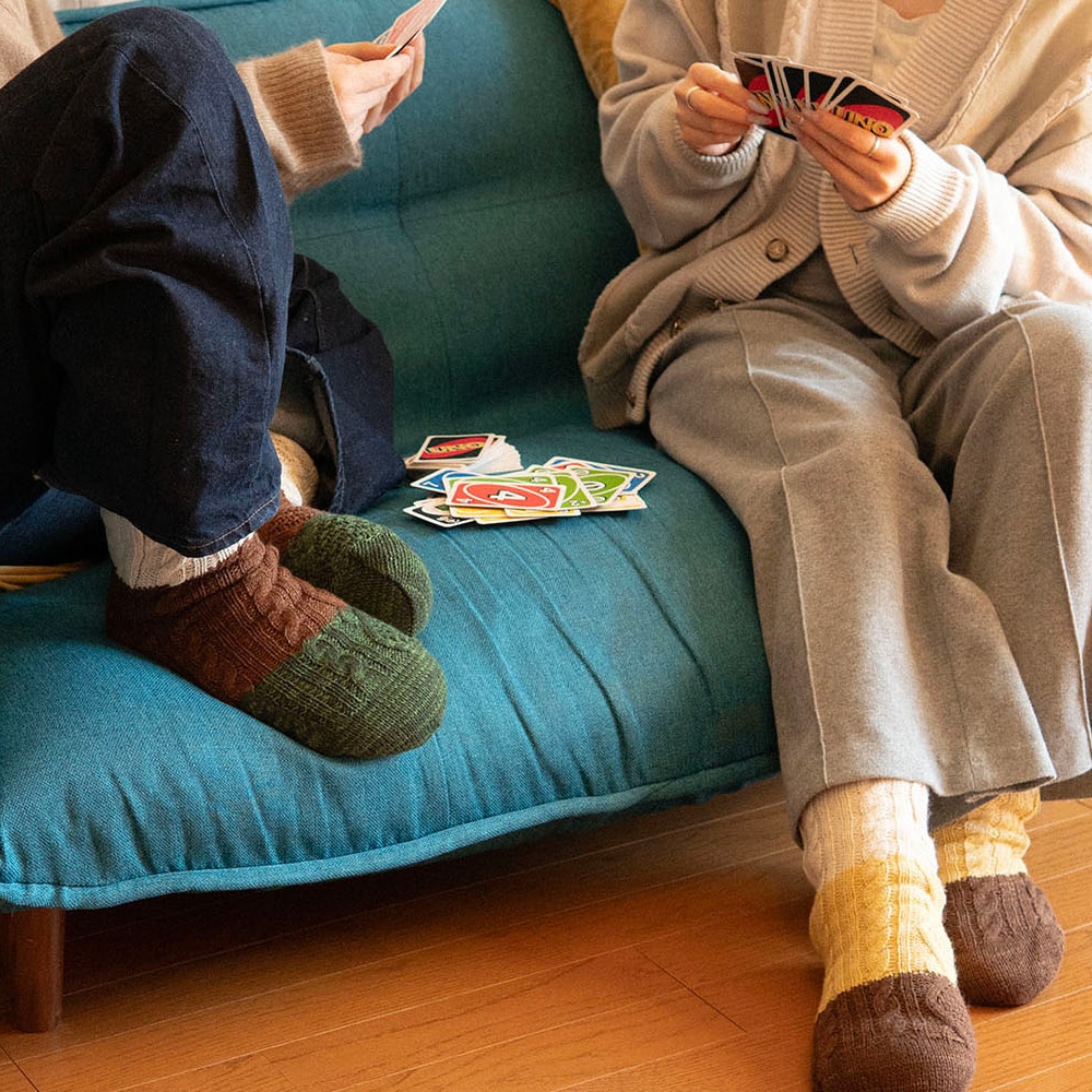 【毎年人気!】裏ボアホームソックス 切替ケーブル クルー丈