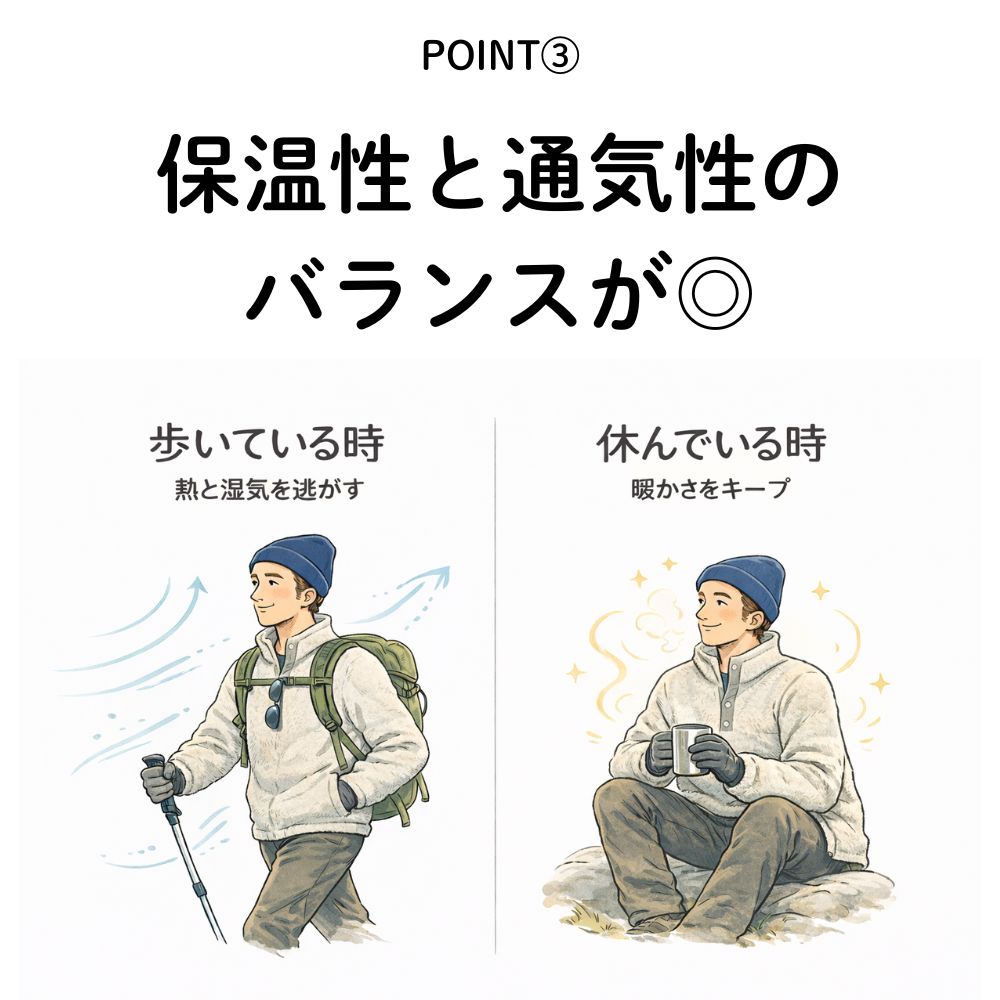 ③高い保温性と蒸れにくさ