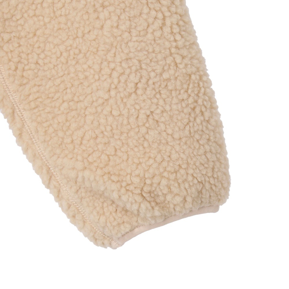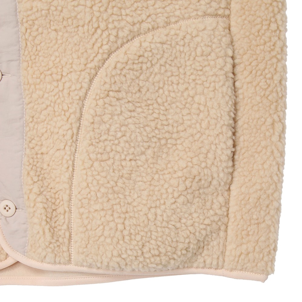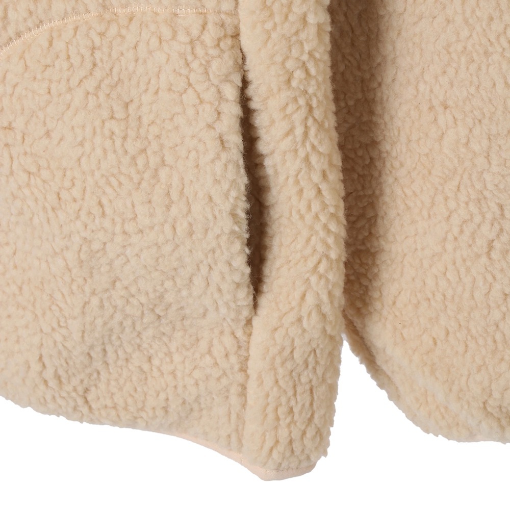 軽量で、ふんわり柔らかな肌触りが特徴のボアフリース素材を使用。今季は裏地にフリースをボンディングしているので、より保温性がアップし、毛玉もできにくくなりました。
