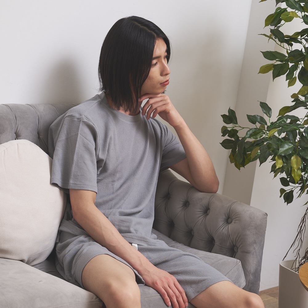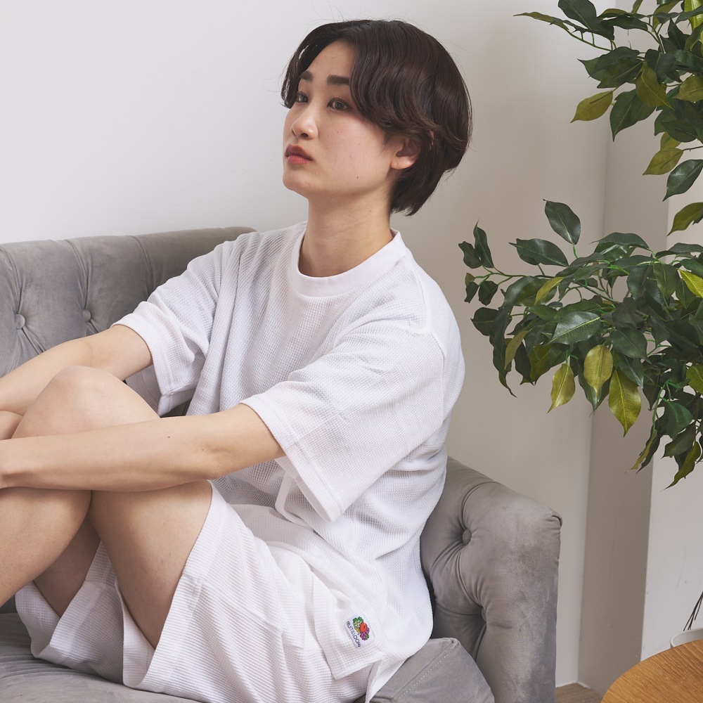 生地をワッフル織りにしているのでべたつかず、さらりとした肌ざわりが魅力。