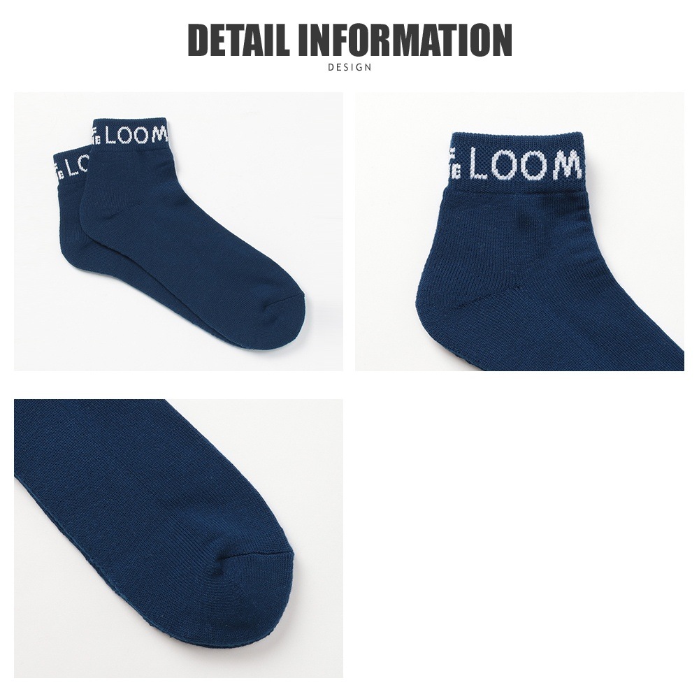 スタンダードなホワイト、ネイビーにカラフルなイエローカラーがおしゃれな程よい丈感のロークルー丈のソックスです。
