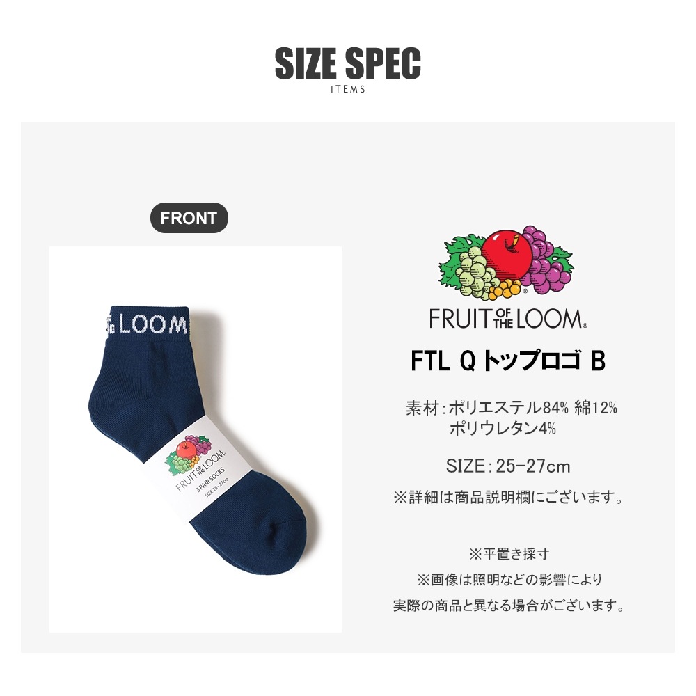 FRUITOF THE LOOMのロゴがプリントされた嬉しい3足セットアイテムです。