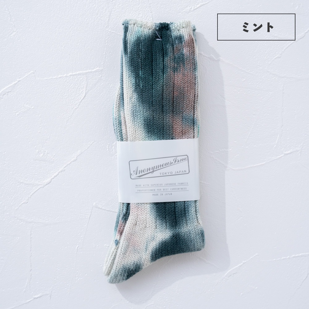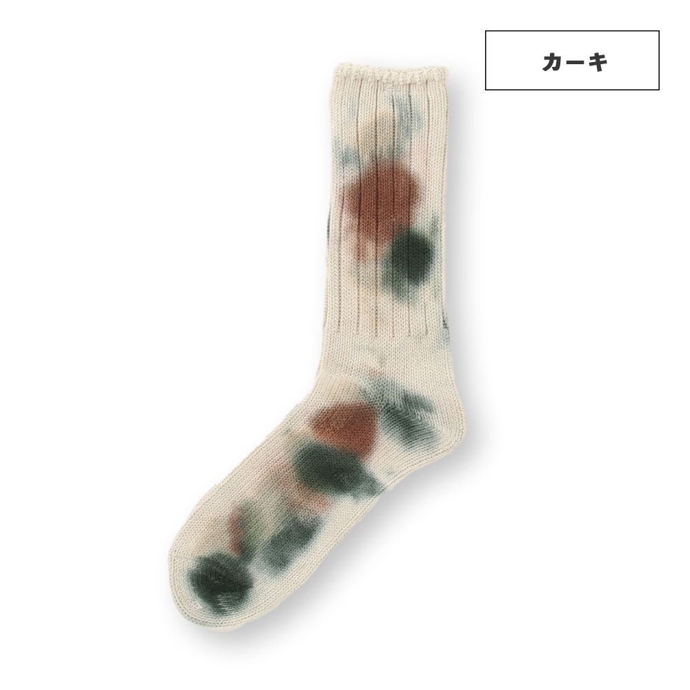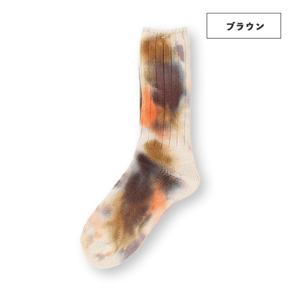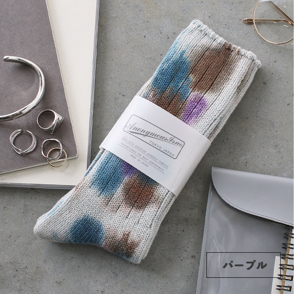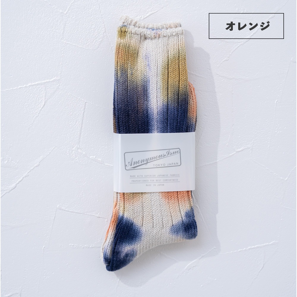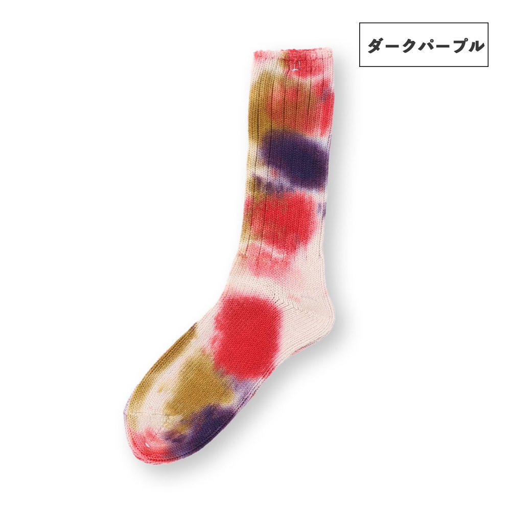 数色の組み合わせでつくられるタイダイ柄のソックスは、存在感がありつつもコーディネートに馴染みやすく、とても重宝します。