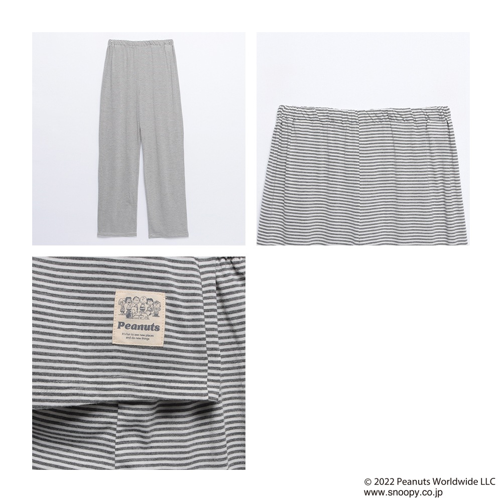 かわいいスヌーピーのルームウェアが登場しました☆ ボーダー柄に、胸元のスヌーピーがワンポイント。 さりげないかわいらしさで、年齢問わず着ていただけます。 通気性抜群の天竺素材で、着心地もばっちり。 おうち時間をますます充実させるアイテムとしてもってこいです。 家族や友人と、色違いで揃えるのも可愛くておすすめです◎
