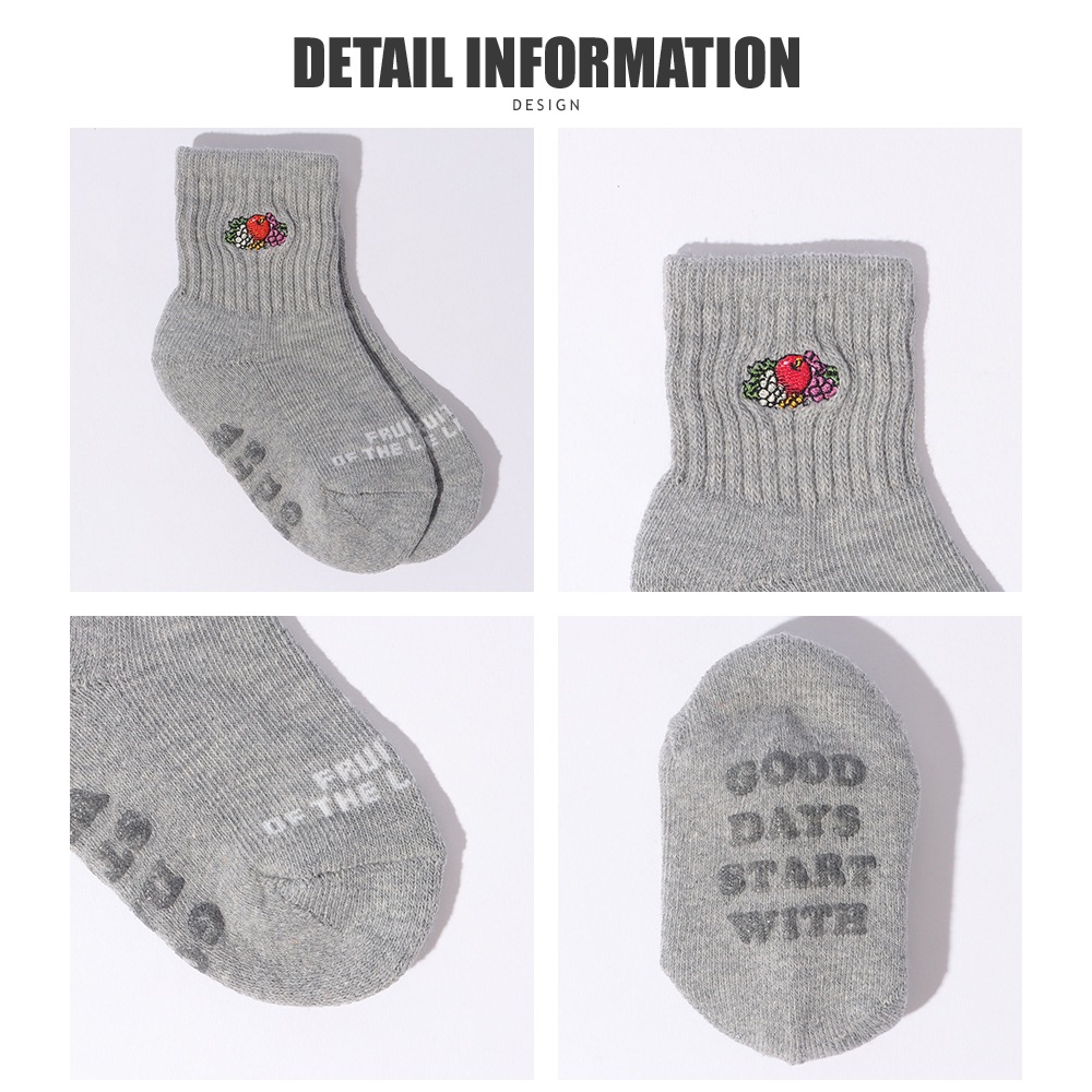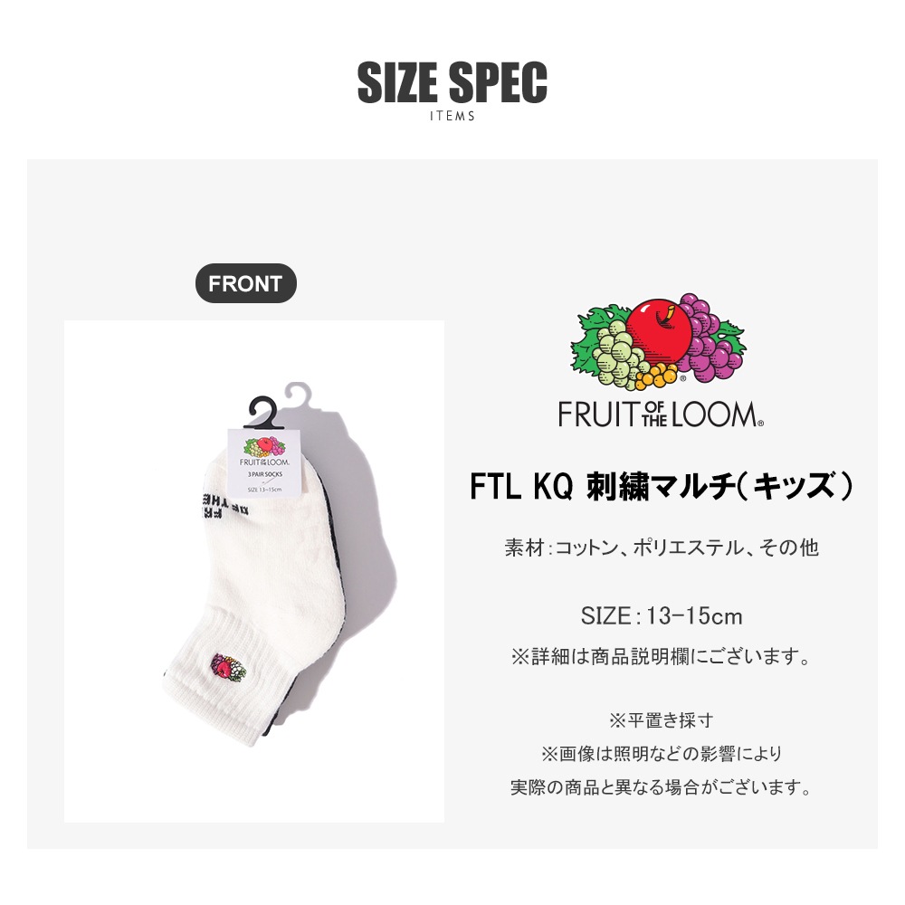 【FRUIT OF THE LOOM】キッズ フルーツ刺繍 クォーター丈ソックス /13?15cm
