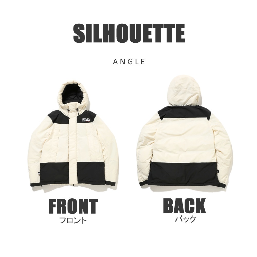 表地: ポリエステル100%, 裏地: ナイロン100%, 中綿: ダウン90%, フェザー10%