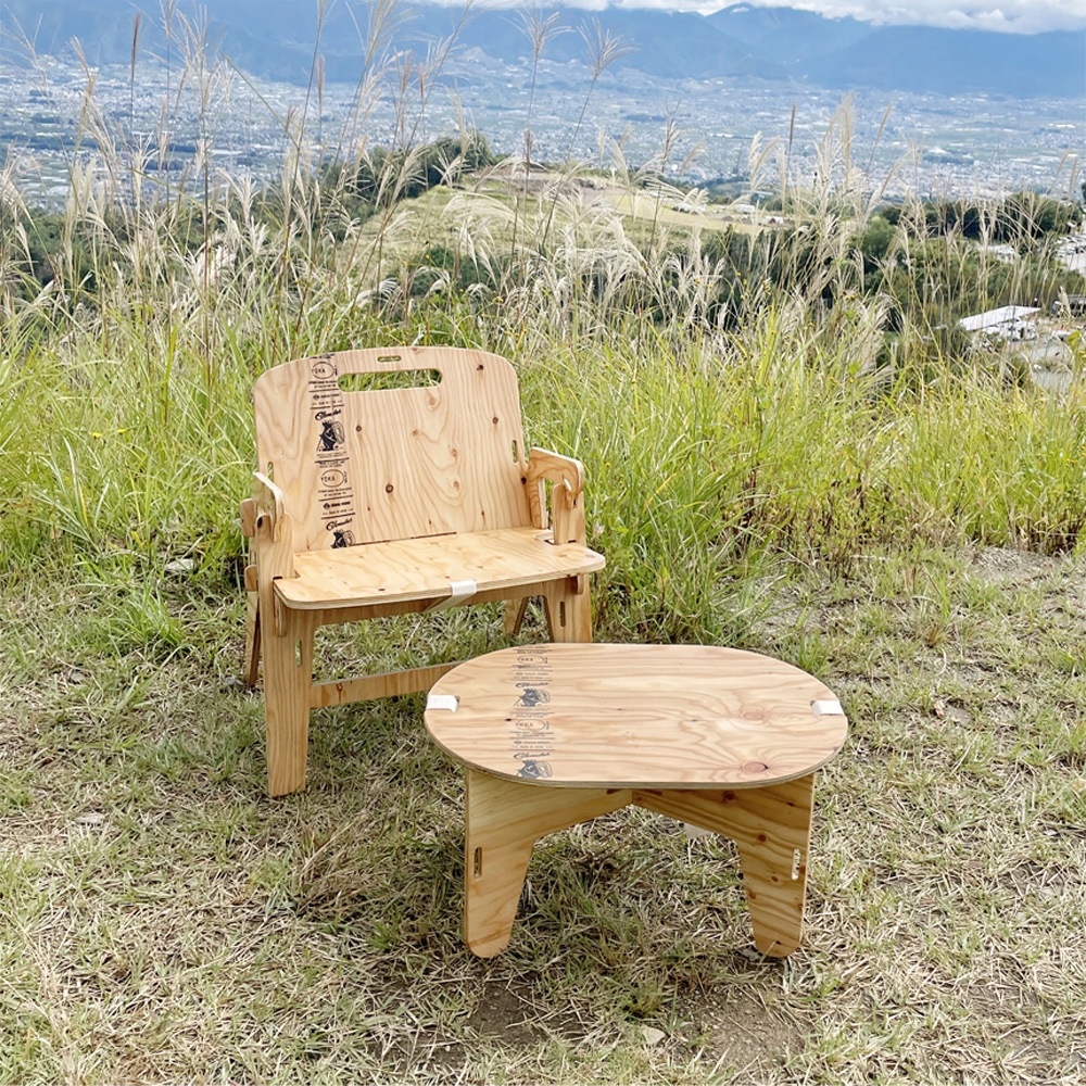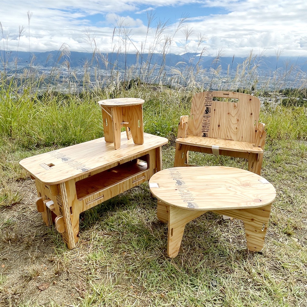 板状のパーツを組み立てて作る、アウトドア家具「YOKA」シリーズ。