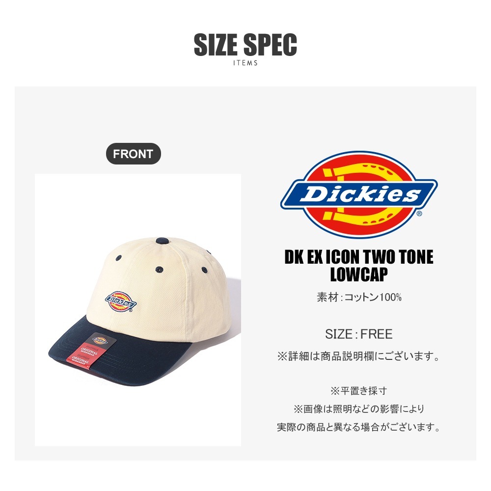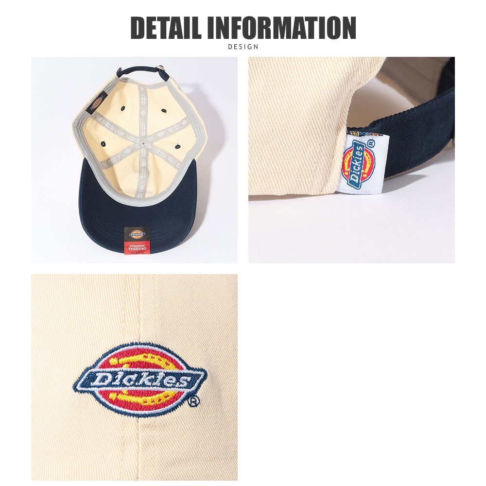 つばの部分には、Dickiesのパンツでおなじみのブランドシール付き。
