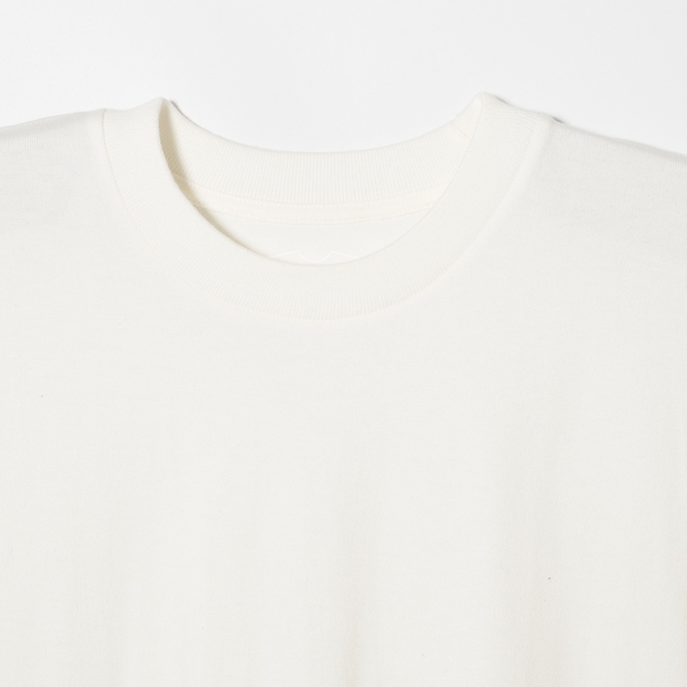 生地は3P-T(3枚入りパックTシャツ)赤ラベルで使用している糸を双糸にして編み立てた、厚みと柔らかさを兼ね備えた7.0オンス。