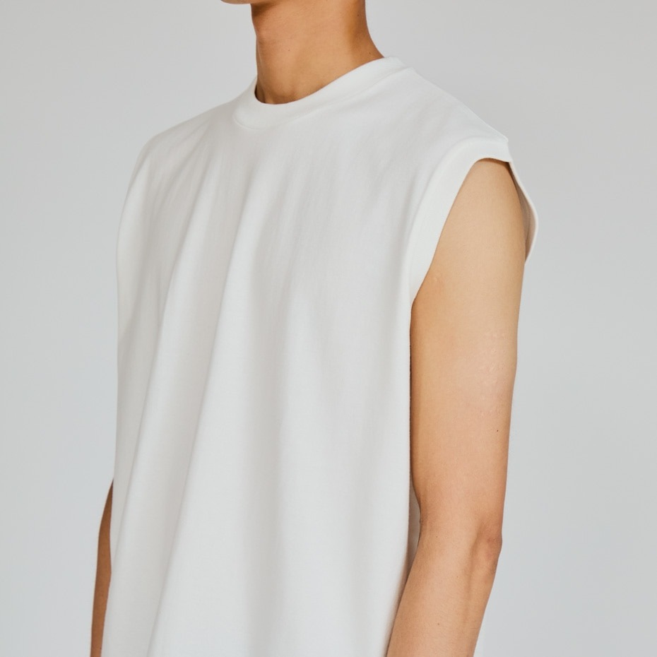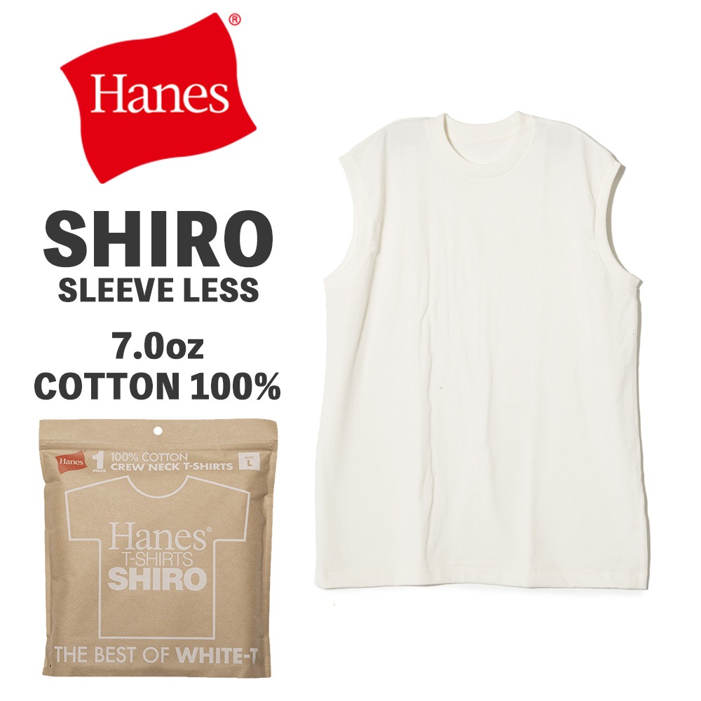Pack-T(パックT)のパイオニア、Hanes(ヘインズ)が提案する、“Hanes T-SHIRTS SHIRO”(ヘインズ Tシャツ シロ) スリーブレスTシャツです。