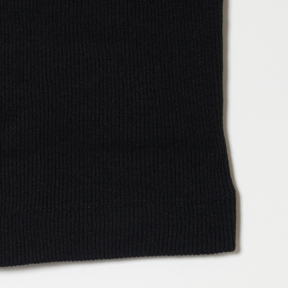 リブ編みの一種で生地の表面に凹凸感のあるテレコ素材は肌離れが良く、優れた伸縮性による心地良いフィット感が魅力。