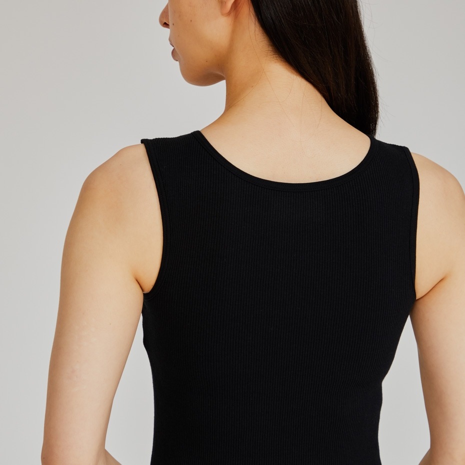 縫製されたブラカップ付きで、アンダーゴムを胴周り一周に入れているので着用時の安定感があります。