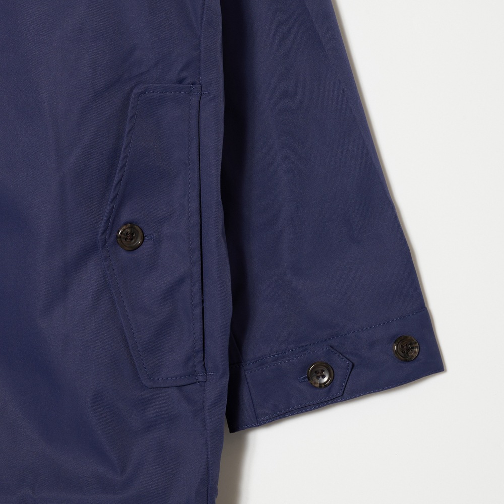 撥水加工を施した、程よい光沢感のあるポリエステルツイル生地を使用したライトアウター。