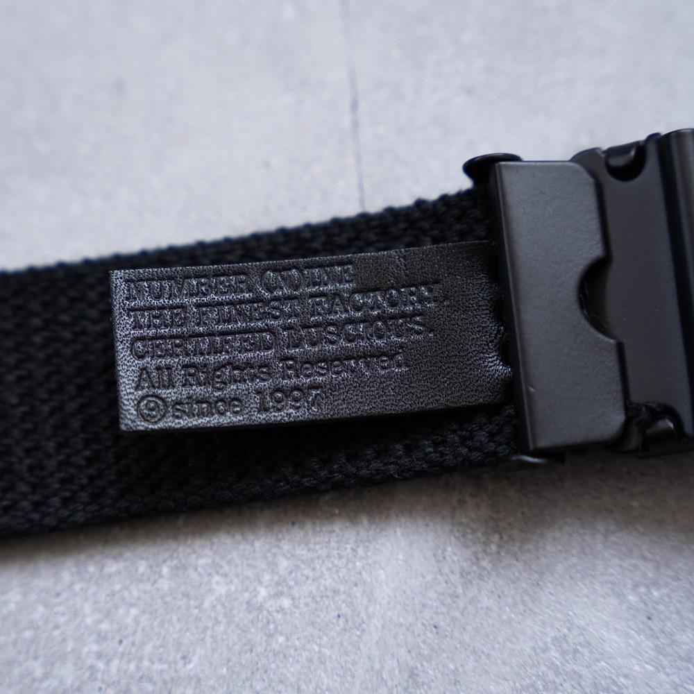 バックル部分にはNumber?ロゴをさりげなく刻印し、ベルト先のパーツには表裏にNumber?ロゴを刻印しているので、どちらを垂らしてもロゴが見えるように着こなして頂けます。