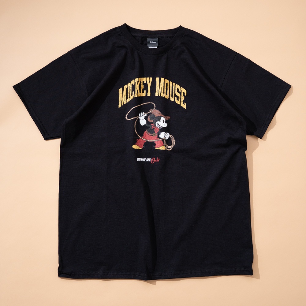 【Disney】カウボーイミッキー ラッソ プリントTシャツ BLACK/全1色
