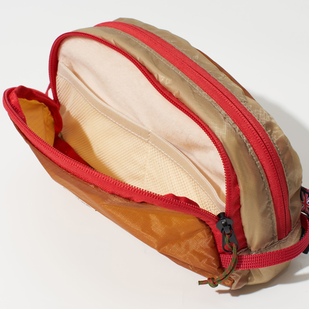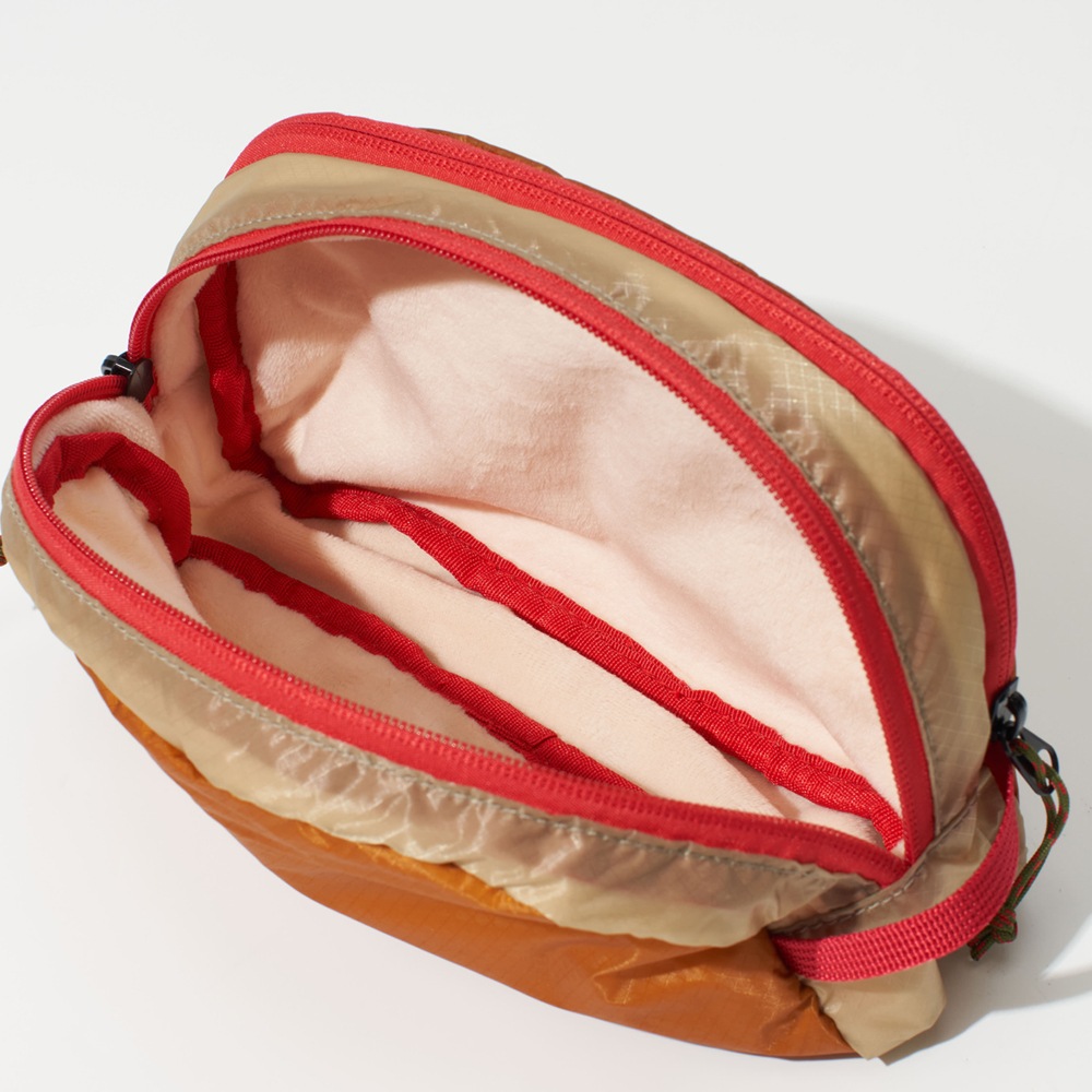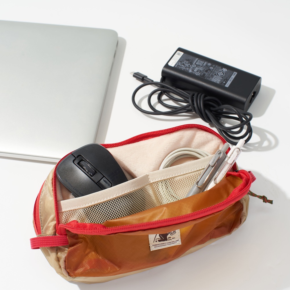 外側に30Dコーデュラシルナイロン、内側に柔らかくクッション性のあるマイクロファイバー生地を採用したガジェットポーチです。