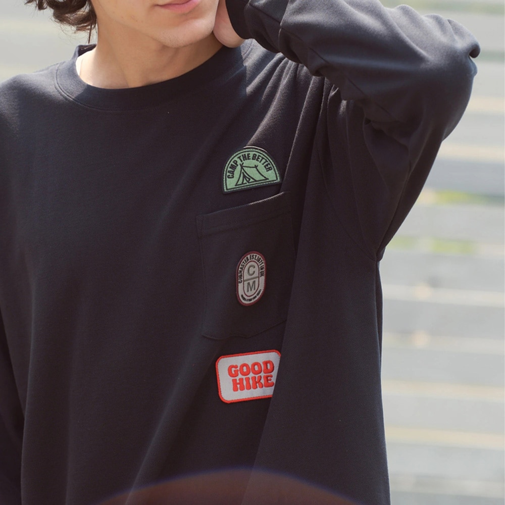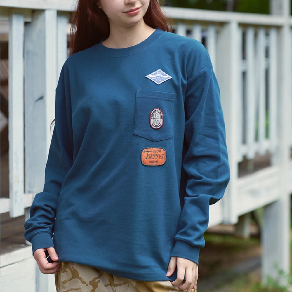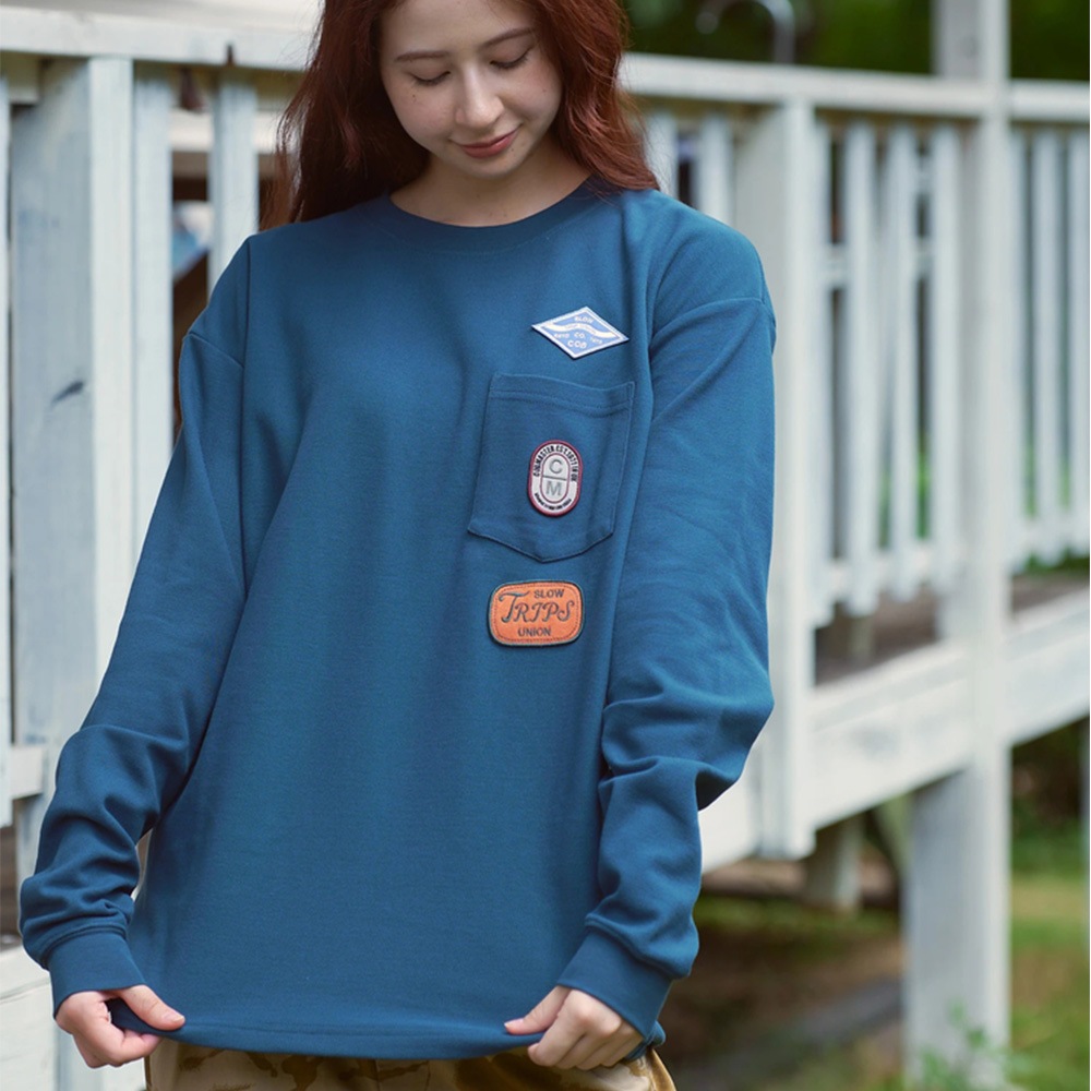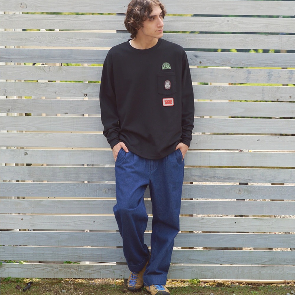 胸ポケットには、レトロアウトドアの雰囲気を演出するオリジナルワッペンをオン。