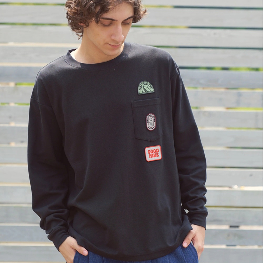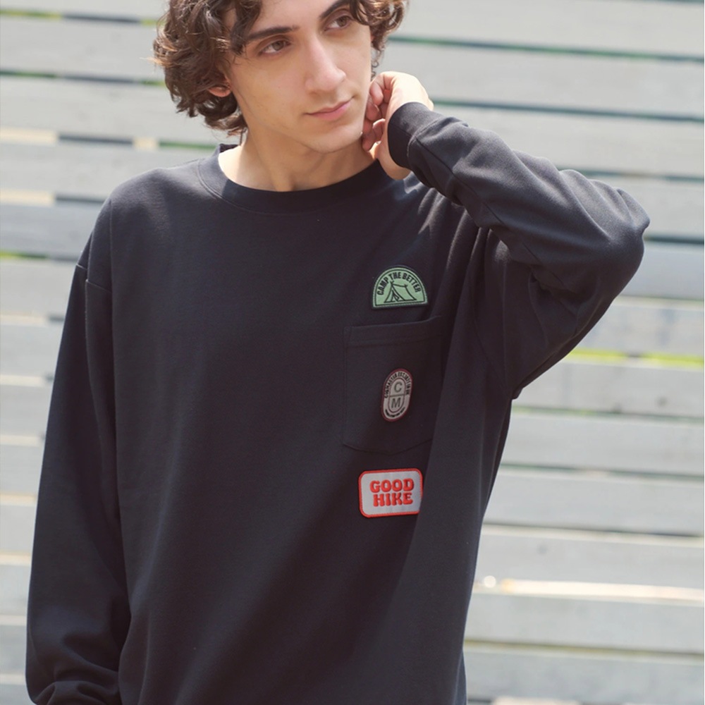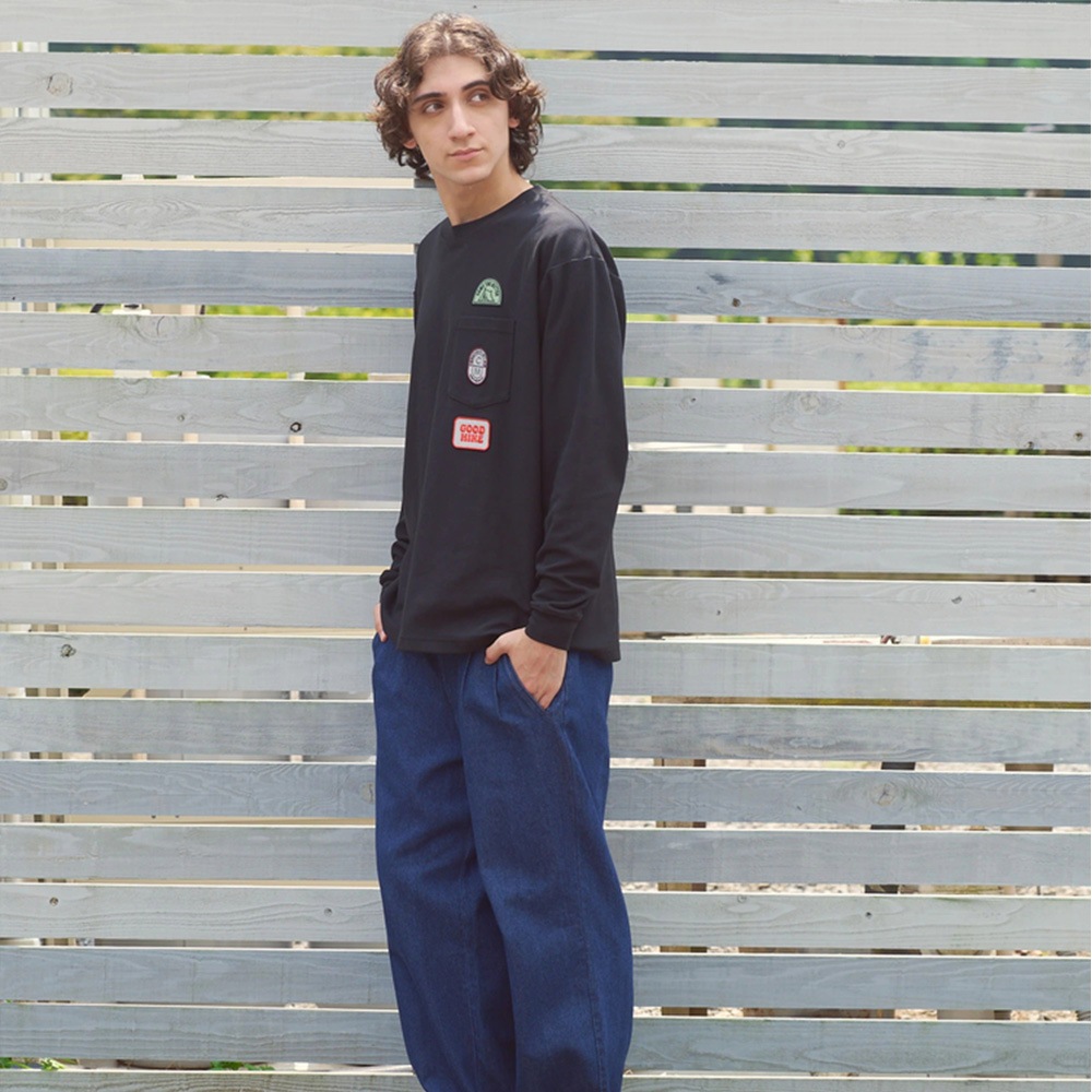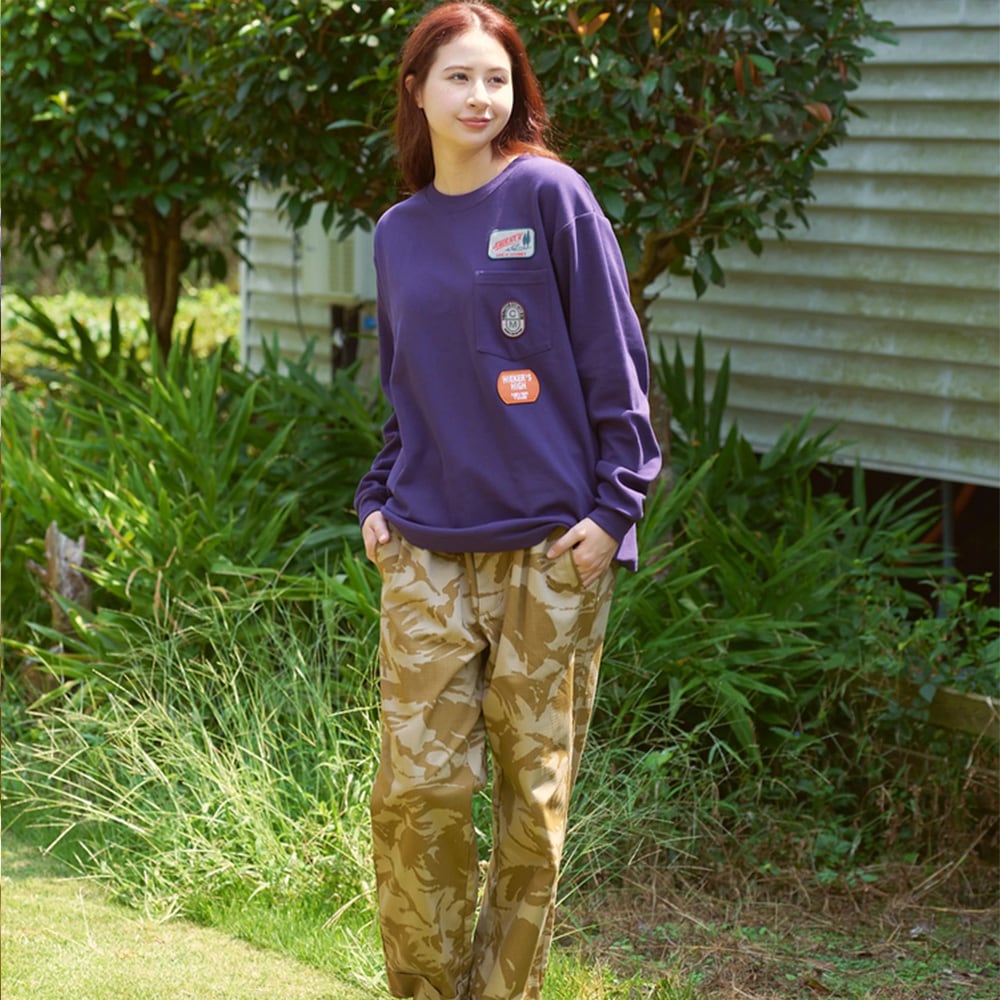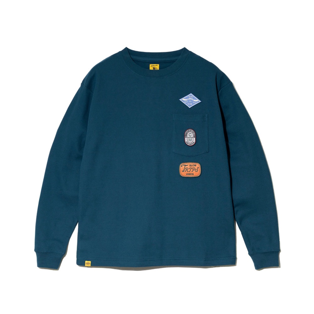 胸ポケットには、レトロアウトドアの雰囲気を演出するオリジナルワッペンをオン。