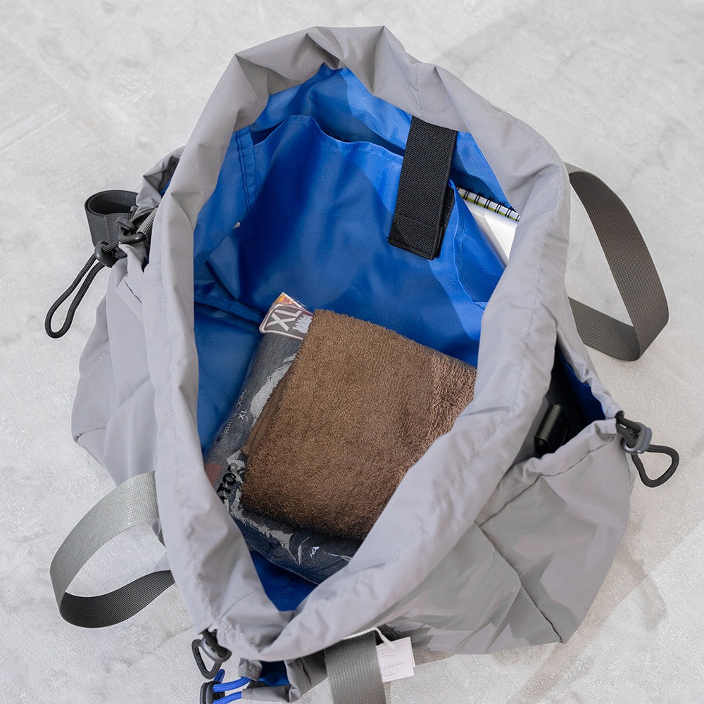 開閉口がドローストリング仕様になった2WAYショルダーバック。