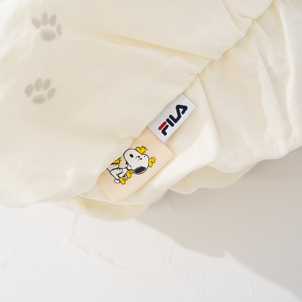 フロント正面にスヌーピーとFILAのブランドロゴ刺繍入りです。