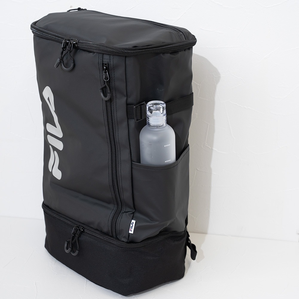 豊富なポケットは、前面ファスナーポケット・シューズ収納可能なボトムポケット。